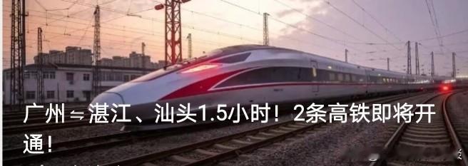 广东有两条高铁即将开通! 一条是广湛高铁,另一条是汕汕高铁汕头站至汕头南站段。广湛高铁设计时速 350 公里,线路从广州白云延伸至湛江北站,中途途经 7 个城市。 汕汕高铁汕头站至汕头南站通车后,汕头站可经汕汕高铁、广汕高铁直达广州,无需再经潮汕站。这条汕汕高铁设计时速同样为 350 公里,开通后,汕头站到广州的通行时间将节省半小时以上。 这两条高铁预计月底开通,届时,湛江至汕头预计3.5小时可以互达! 广湛江高铁 合湛高铁站 佛山广湛高铁 广东高铁 广州至湛江高铁 汕头高铁新站 粤东高铁