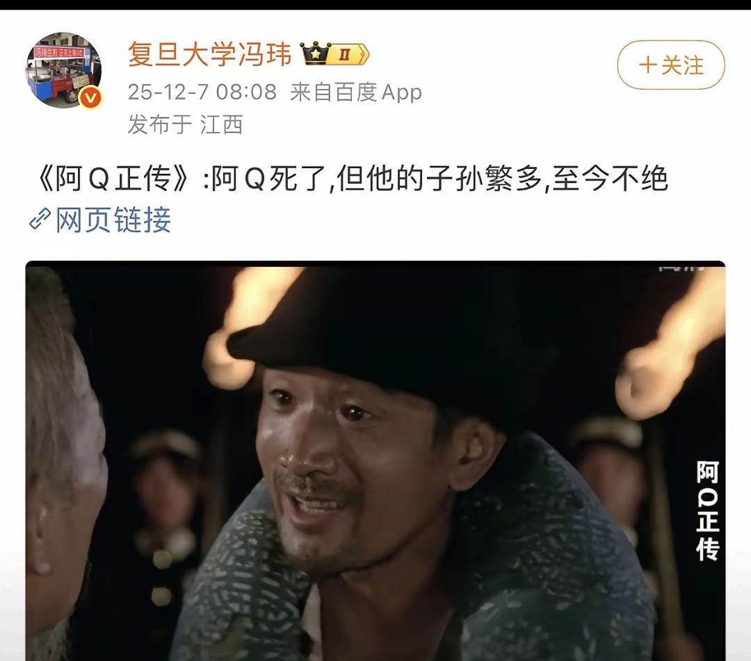 这波怒怼太解气!精日教授抹黑爱国网友,被戳穿本质堪称大快人心 复旦前教授冯玮阴阳网友“阿Q子孙繁多”,暗讽爱国群众是群盲,结果被网友当场回怼“汪精卫子孙也不少,其中一个叫冯桑”,字字诛心,怼得他哑口无言。身为历史教授,拿着国家俸禄,却屡次美化日本侵略,把南京大屠杀说成误杀,用敌伪蔑称叫抗日英雄“抗日分子”,骨子里满是崇洋媚外的奴性。 真的该警醒了,这类扭曲历史、背弃民族的人,根本不配站在讲台,更没资格评判爱国情怀。他们看似顶着高知光环,实则丢了民族骨气,用歪理邪说误导他人,本质就是精致的利己主义叛徒。爱国从不是愚昧,坚守历史底线更是每个中国人的本分,对这种毁三观的言论,就该狠狠反击,让他们无处遁形。 你觉得该如何杜绝这类扭曲历史的言论扩散?评论区说说你的看法!