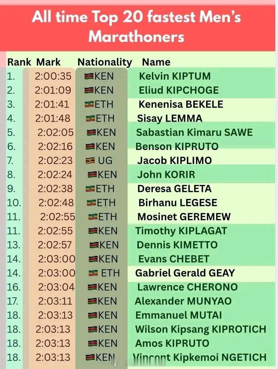 截止2025瓦伦西亚马拉松20个跑得最快的男人和成绩。马拉松 跑步 长跑