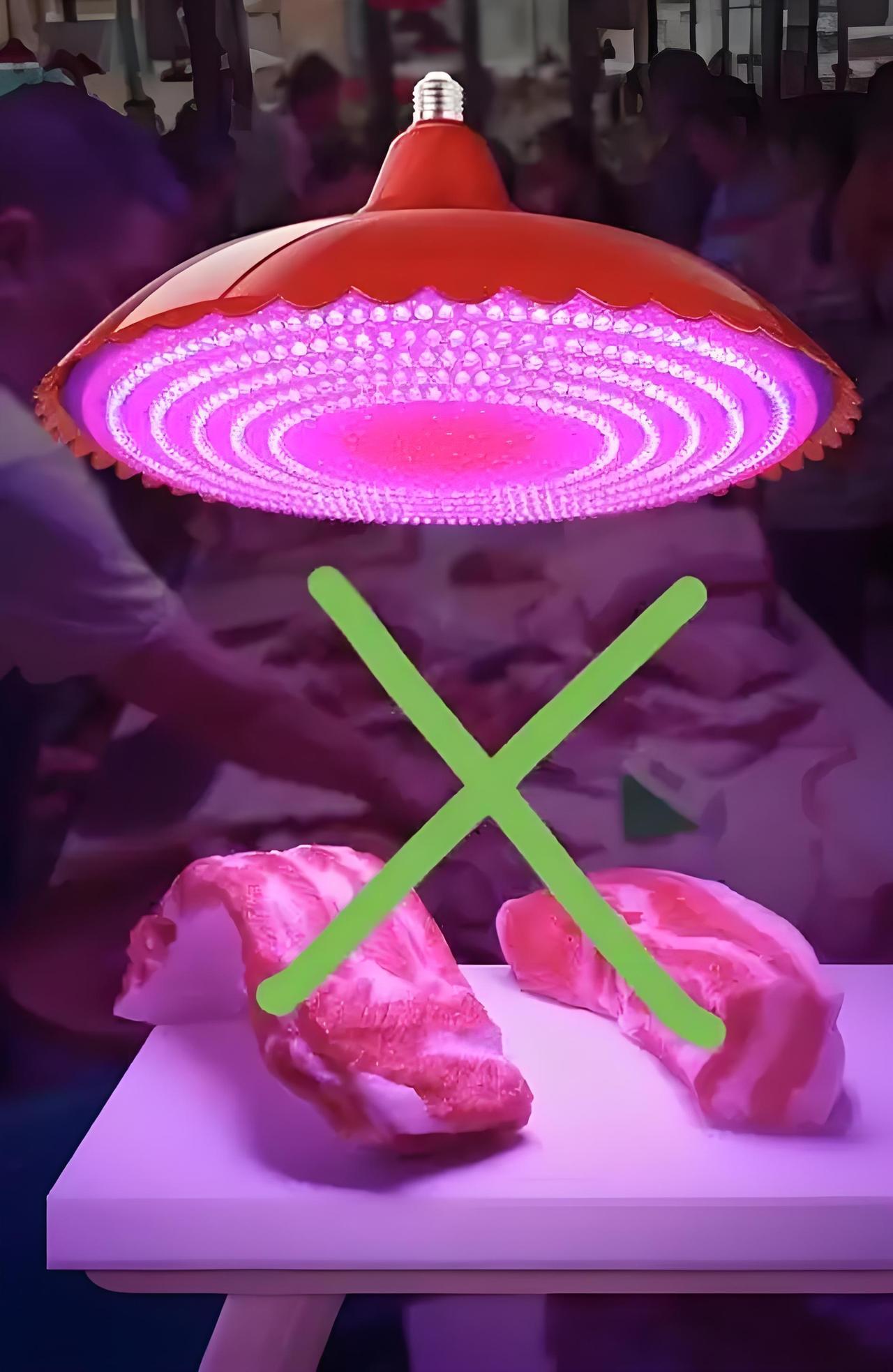 你见过这种灯没有?这种生鲜美颜灯!前两年在卖肉摊见过,一打开,那肉看着红彤彤、油亮亮的,根本看不出肉新不新鲜,但是把肉买回家,就知道有没有猫腻了… 从那以后,我只要看见用这种灯的柜台,直接绕着走。 可这种早就禁止的灯,现在还有人偷偷在用,既误导了消费者,也让诚信经营者吃亏,所以大家买东西还是得擦亮眼睛… 猪肉专用灯 生鲜超市灯 高显色生鲜灯