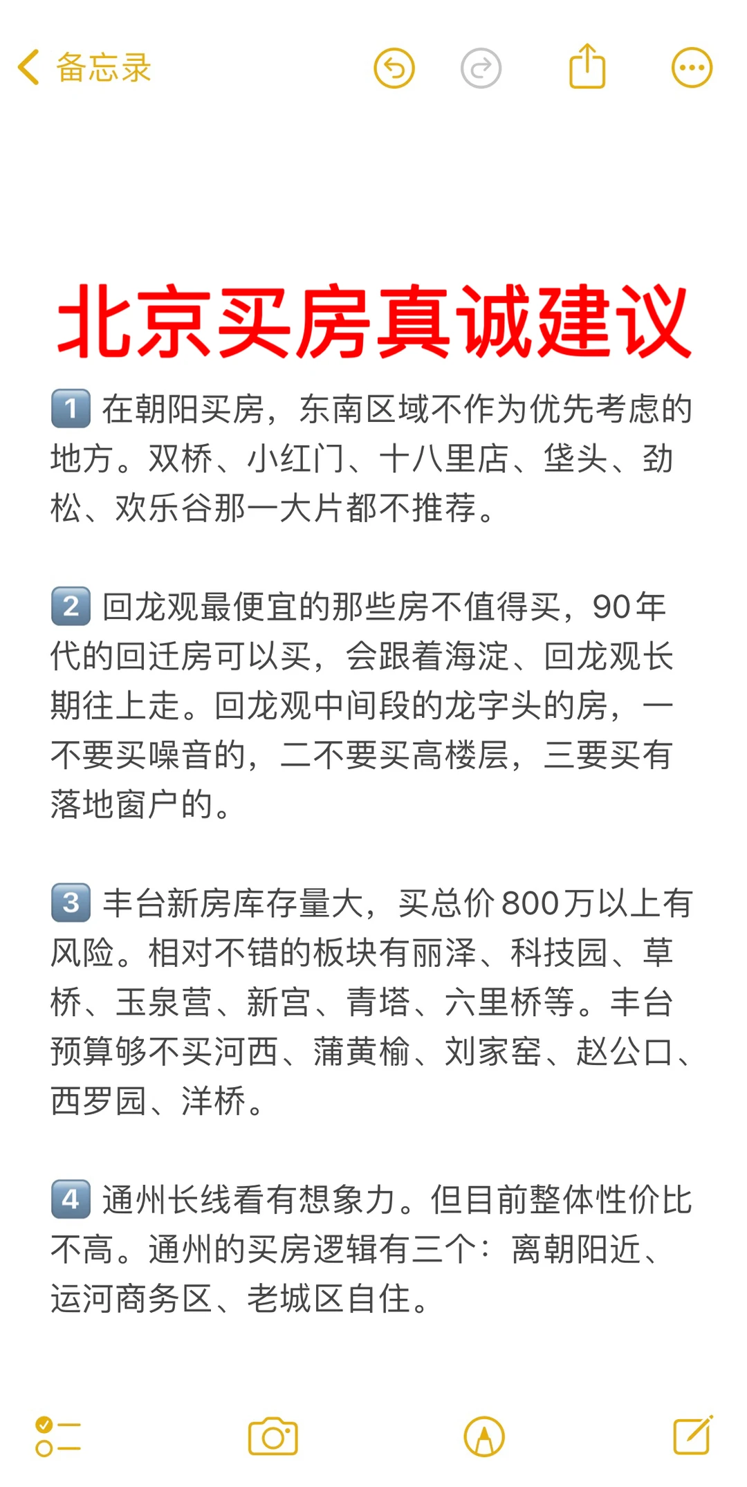 1️⃣ 在朝阳买房,东南区域不作为优先考虑的地方。双桥、小红门、十八里店、垡头、劲松、欢乐谷那一大片都不推荐。