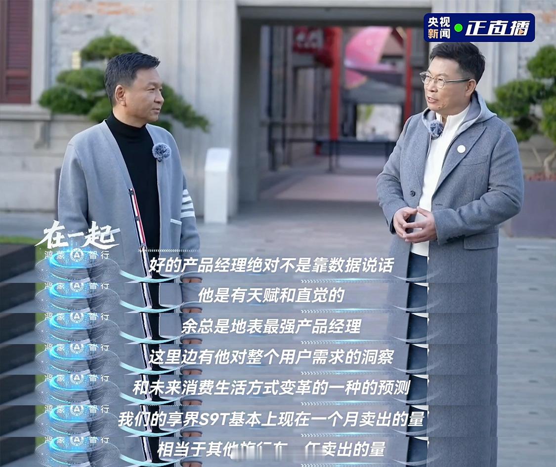 现在很多品牌造车都是按公式和市场调研来的,这是把车造好、卖好的方法论,没有问题。但这两年大家真的觉得产品的同质化越来越严重,而且产品定义也类似。鸿蒙智行的做法就是在方法论的基础上做技术领先,取得了非常有效的成果,安全性、智能化、品牌等等,这是都是消费者需要的。更值得夸的是享界S9T,在很多品牌不敢碰的旅行车这个领域,余总不仅力排众议做了,还做成了。所以我很认同:好的产品经理绝对不是靠数据说话,他是有天赋和直觉的。现在享界S9T一个月的量就做到了其他旅行车一年的量,爽点不仅仅在于产品体验的领先,更重要的是享界给了我们证实了一件事:情绪和直觉,依旧能俘获很多人的内心。鸿蒙智行享界12月交付目标破万余承东总能把小众做成爆款余承东再谈为什么造旅行车