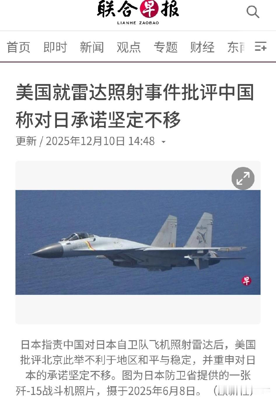 这是美国首次公开批评中国战机对日本军机照射雷达的行为。 真tmd多管闲事。