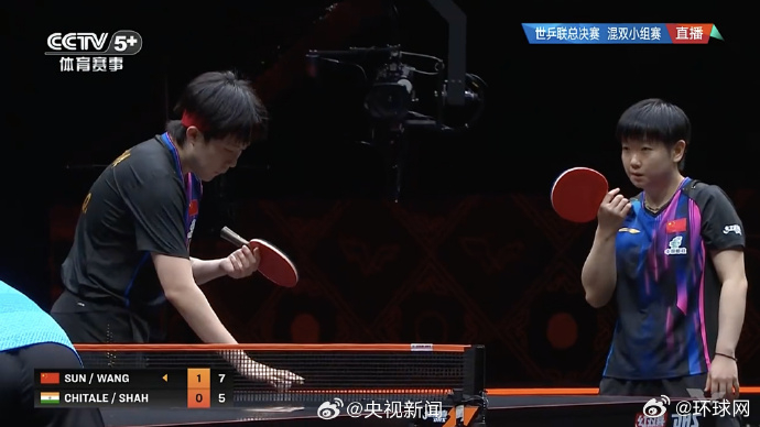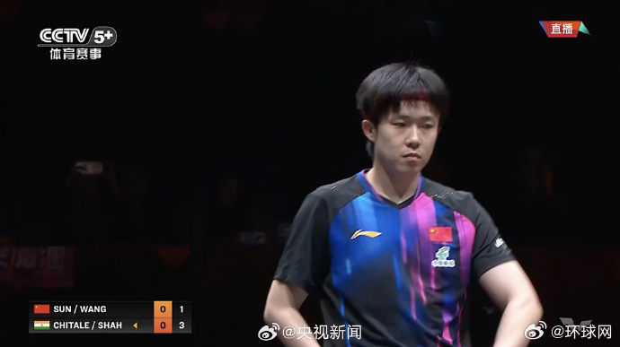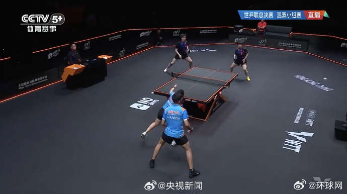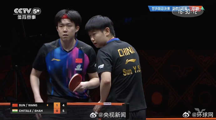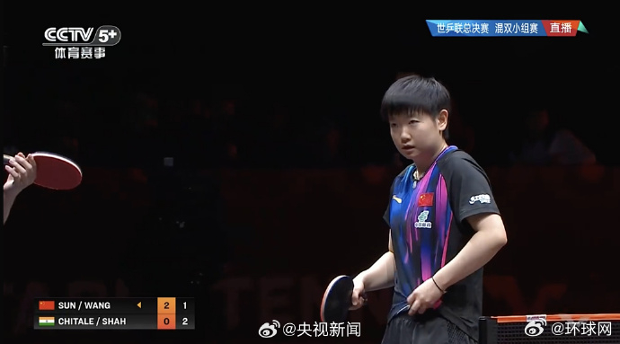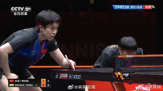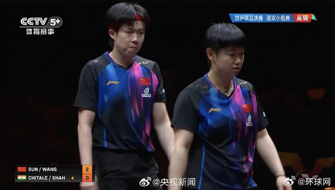 【#乒乓混双中国3比0印度#】#混双孙颖莎王楚钦开门红# WTT香港总决赛混双小组赛,/战胜印度组合,拿下开门红。继续加油!(央视)