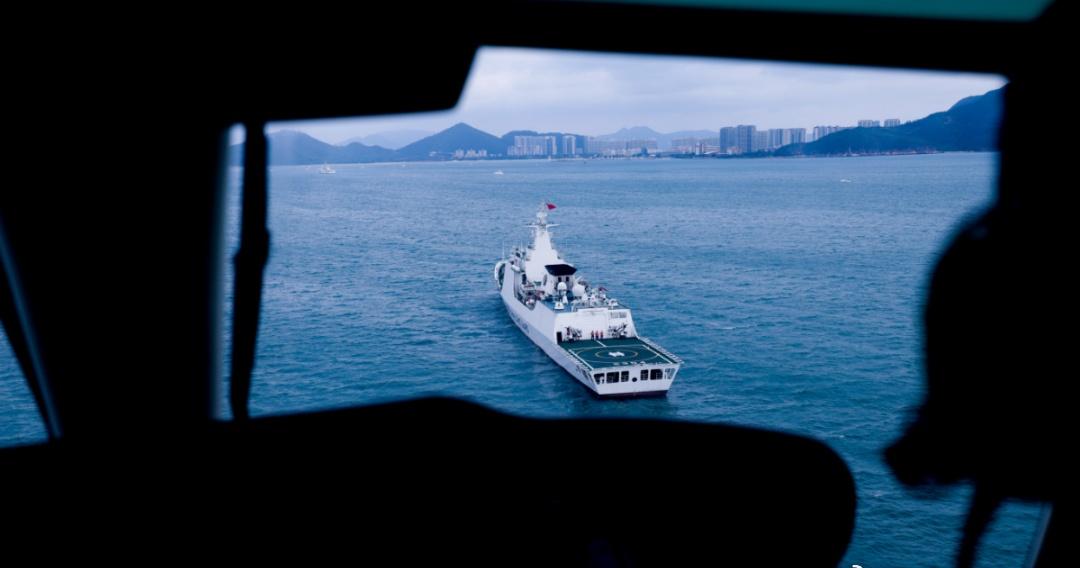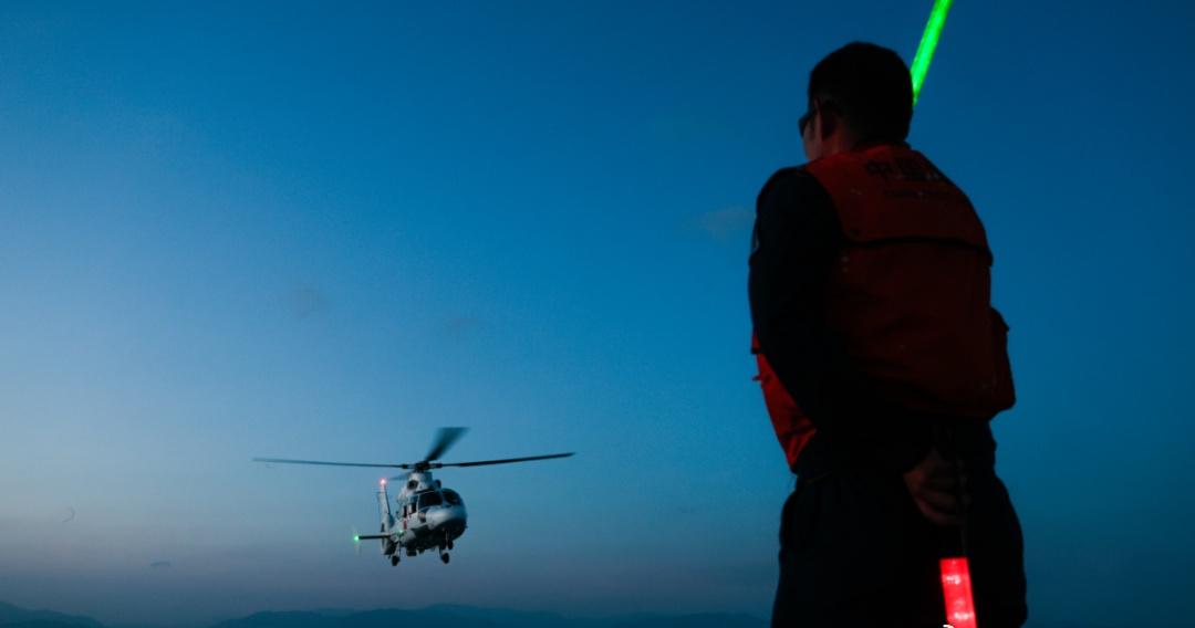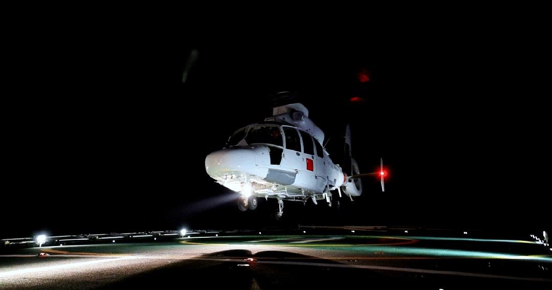 踏浪着舰!南海某海域 海警直升机展开夜间高强度着舰训练