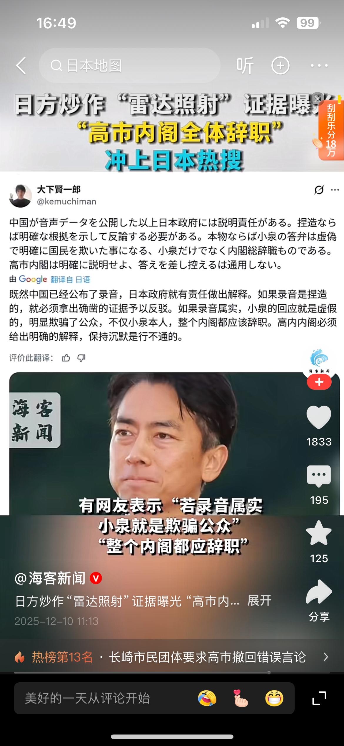 日方炒作“雷达照射”证据曝光,本就是我们通报在先,日方故意滋扰辽宁舰正常训练后,反而倒打一耙。 玉渊潭天的录音证据一公布,日方的撒谎行为暴露无疑,日方回复“我已收到你的信息”这是铁证如山! 小泉近次郎这一下算是“原形毕露”了!既然我们敢公布录音证据,就有十足的把握,小泉近次郎撒谎了恶意炒作无疑。