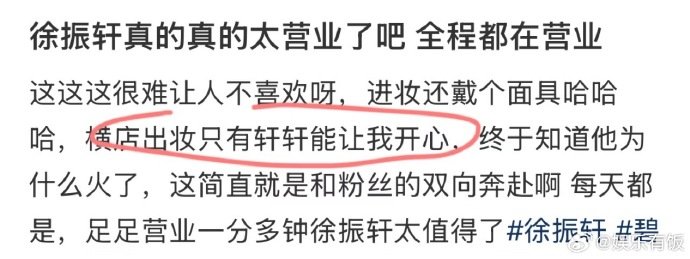 徐振轩半个月俘获4个代拍芳心 干这行最忌讳爱上客人徐振轩除外 半个月内多位代拍发文“爱上徐振轩”,笑称行规是“最忌讳爱上客人,徐振轩除外”。片场戴面具出妆整活、温柔提醒粉丝安静、还会偷偷看代拍镜头,这真诚又会撩的小细节,难怪能拿捏所有镜头后的人心!