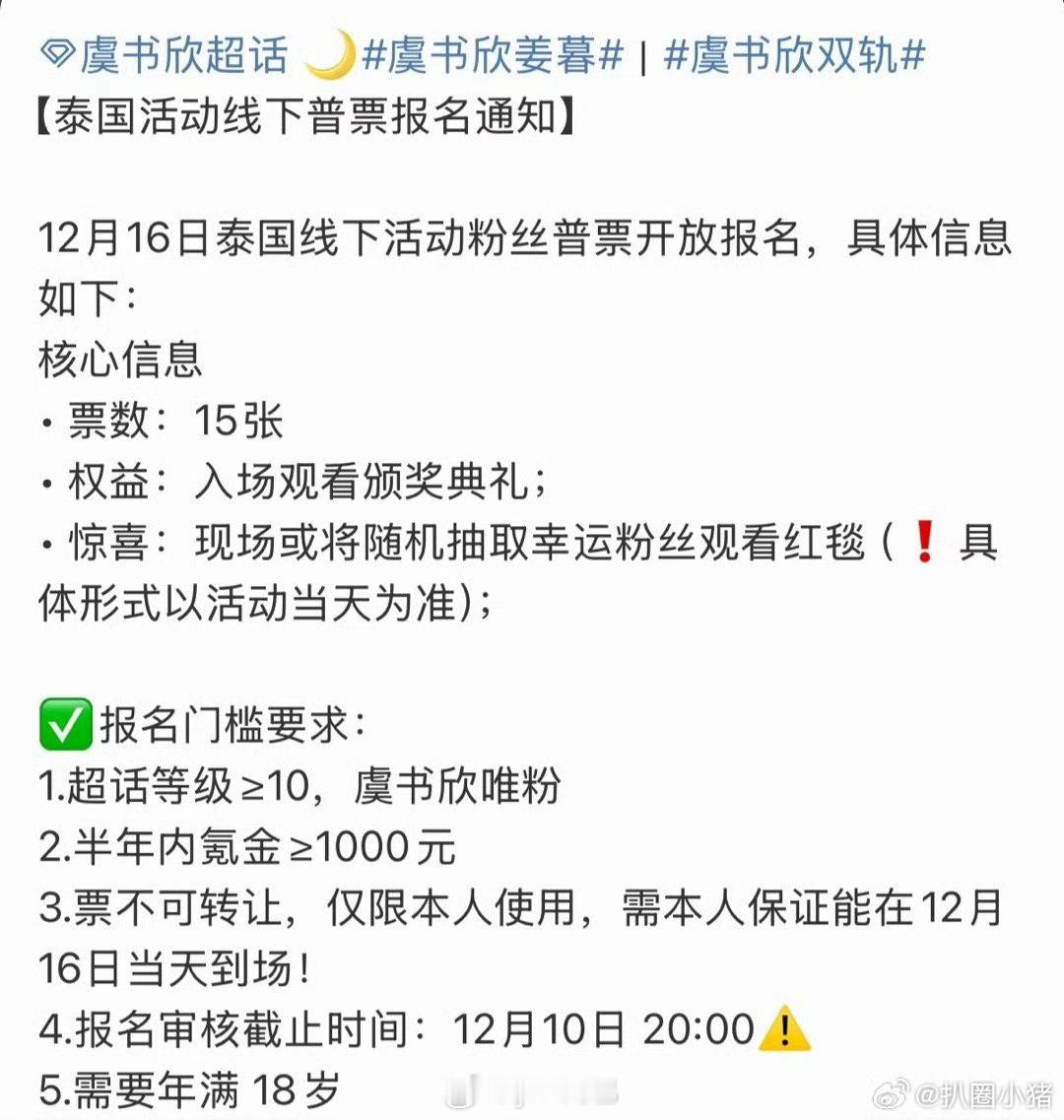 虞书欣12月16要出席泰国线下活动