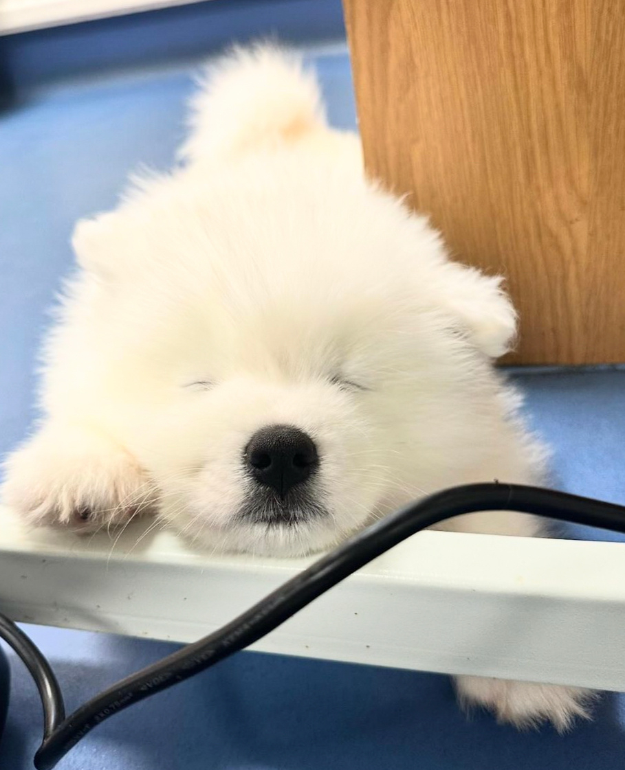萨摩耶:抓好绳子,走这边,别走丢了耶!