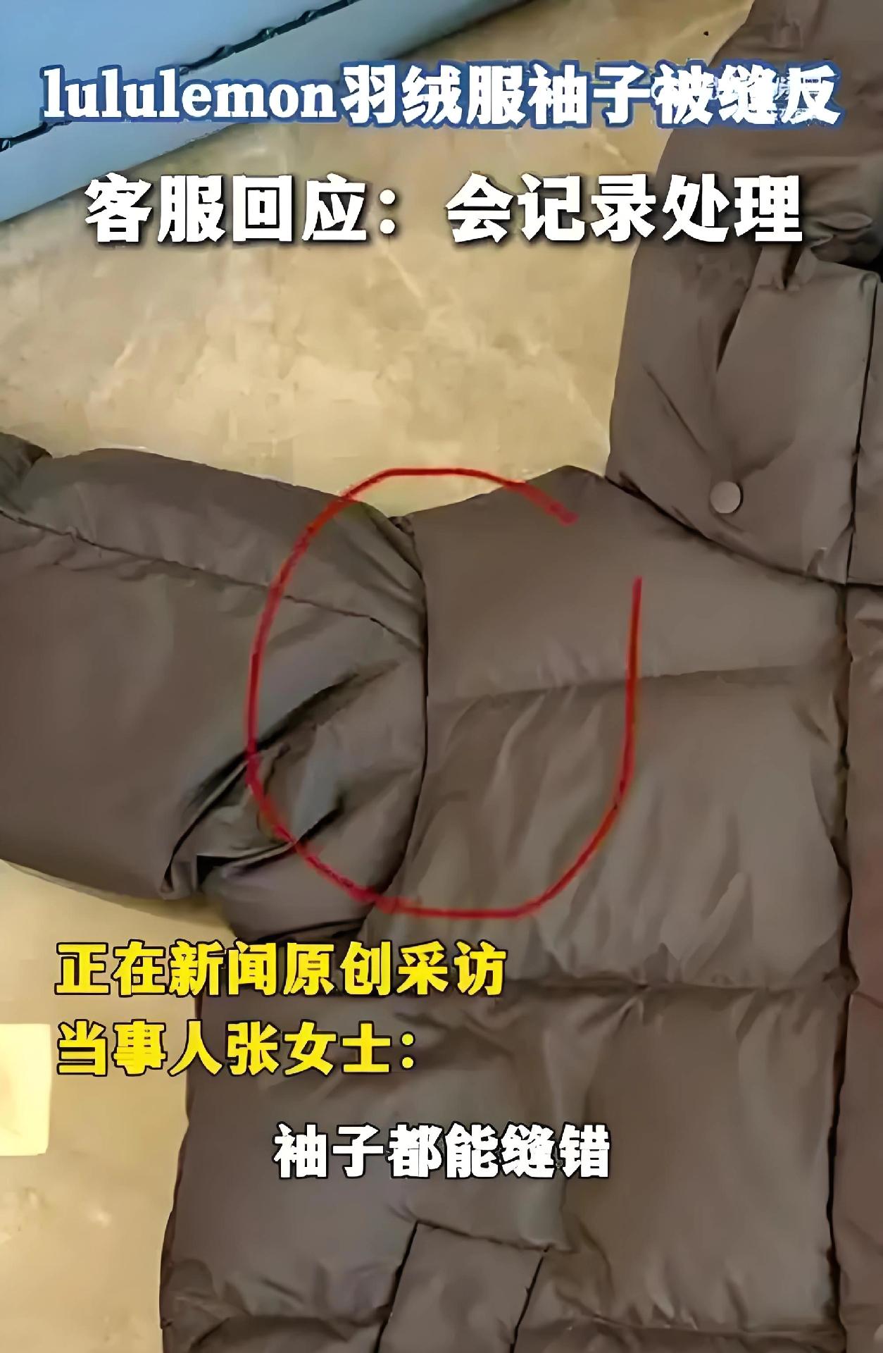 都多少年没逛街了,都不认识现在的品牌了! 12月9日,内蒙古呼和浩特的张女士想着买件好点的羽绒服过冬,就在一家叫lululemon的官方旗舰店,花2500多块钱下单了一件羽绒服。 2500块一件羽绒服啊,我这家庭主妇听着都肉疼,感觉这都算是天价了,结果呢,钱没少花,试穿的时候发现,右边的袖子居然是缝反的!这品牌做工也太不靠谱了,真不知道是怎么把关的! 冬季品牌羽绒服 羽绒服品牌