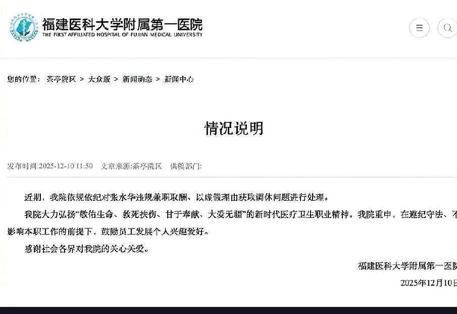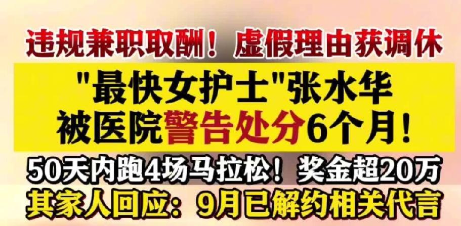 “最快女护士”张水华为何因虚假调休被医院处分?真相背后有哪些值得深思? “最快女护士”张水华因虚假理由调休被福建医科大学附属第一医院处分一事,引发了广泛关注。医院认为她以虚假理由申请调休参加马拉松比赛,实际为违规兼职取酬,破坏了医院的正常工作秩序,违反了《事业单位聘用合同》的相关条款。张水华被警告处分6个月,并取消了2025年的评优资格。这一事件不仅凸显了职场诚信的重要性,还引发了关于医护人员工作伦理和职业操守的讨论。医院方面表示,此次处分旨在维护医院的正常运作秩序,促进医护人员的职业道德建设。此事件提醒所有医护人员,应当严格遵守工作纪律,确保医疗服务的质量与效率。