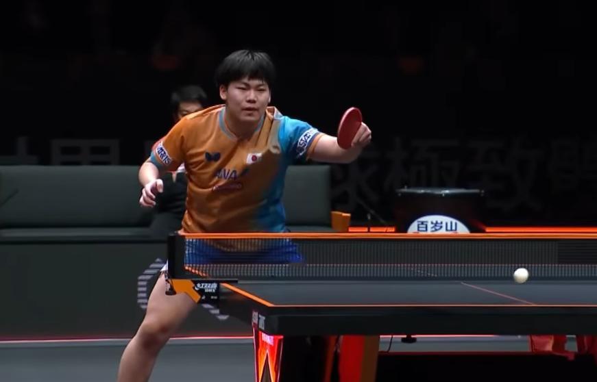 我去!松岛辉空回抛的太厉害了吧! 王楚钦就是太善良了, 也不请求鹰眼, 结果让松岛越打越顺, 后面就很难控制了。 你看这胳膊的角度, 如果不超过30度, 我吃了这球。 松岛开局4:1领先, 然后6:3继续领先, 最后11:6拿下首局。 他教练笑的都没眼睛了, 不过四局还长着呢,