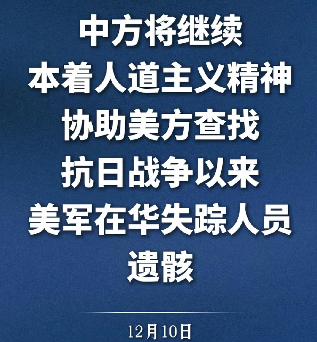 此举可唤醒美国二战记忆,中方将协助美查找在华失踪人员遗骸在,美国确实帮助过中国人民抗战,我们曾经有着共同的敌人日本,中美两国本来就不是敌人,顶多算竞争对手,不至于你死我活,抗战时期还给予了我们巨大帮助,这一招不错,二战战胜国与战败国彻底划清界限,寻找战胜国共同历史记忆。