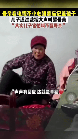 母亲独自在家看电视时不小心睡着,连被子都忘了盖。远在别处的儿子通过家中监控看到这一幕,既心疼又害怕,一遍遍对着监控大声喊“娘!”,语气里满是焦急——他怕自己喊不醒母亲。一声声急切的呼唤后,母亲终于醒了过来,缓缓坐起身回应。这一声声有回应的牵挂,是最朴素也最珍贵的幸福。年迈母亲 母亲孤独