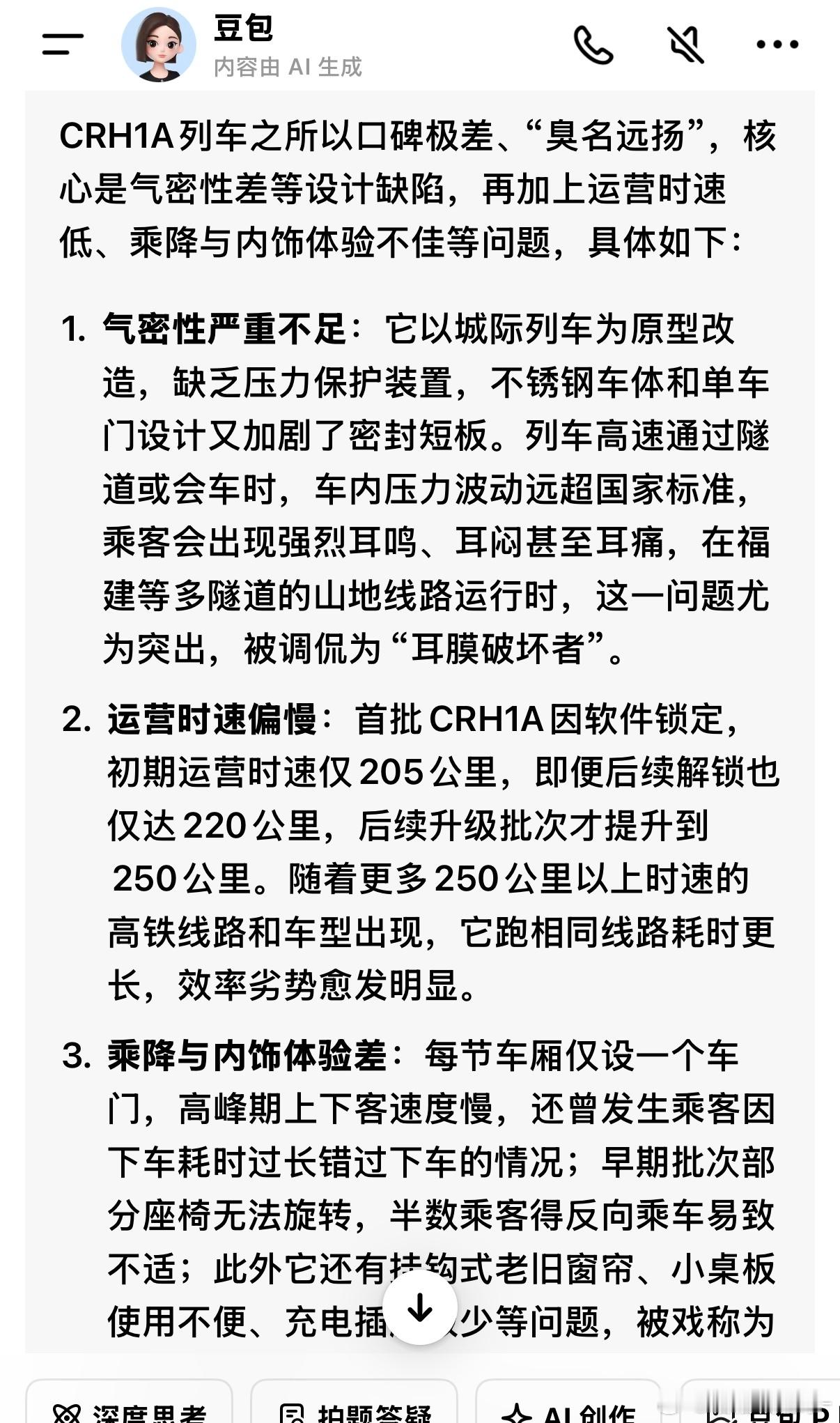 霜霜の日常碎碎念 在网上冲浪看病果然能学到东西…📖 今天去南宁出差坐的这趟动车🚄:面对面四座布局/座椅调不了角度/无单独小桌板/无充电口/甚至和淋座隔挡扶手都没‼️ 更痛苦的是从出发半小时起开始耳鸣、耳聋、耳膜堵的每隔30秒就要吞咽憋气,难受得更没法继续办公或休息 以为自己生大病于是求助某书,才知道我坐上的就是“臭名远扬”的CRH1A🚄 这趟列车外号“大地铁”,由城际列车而来本身气密性就没做好,所以俗称“耳膜快乐车”。其次就地理路线来说,粤西段开始山多隧道多。三是这是一趟两广直达的列车,平均速度会更高。 看了看俺明天返程还是这趟型号,天塌了 据说只有广铁还在用这种古早落后型号,以后去广西坐动车避免不适,最简单的就是避开广铁的线路啊