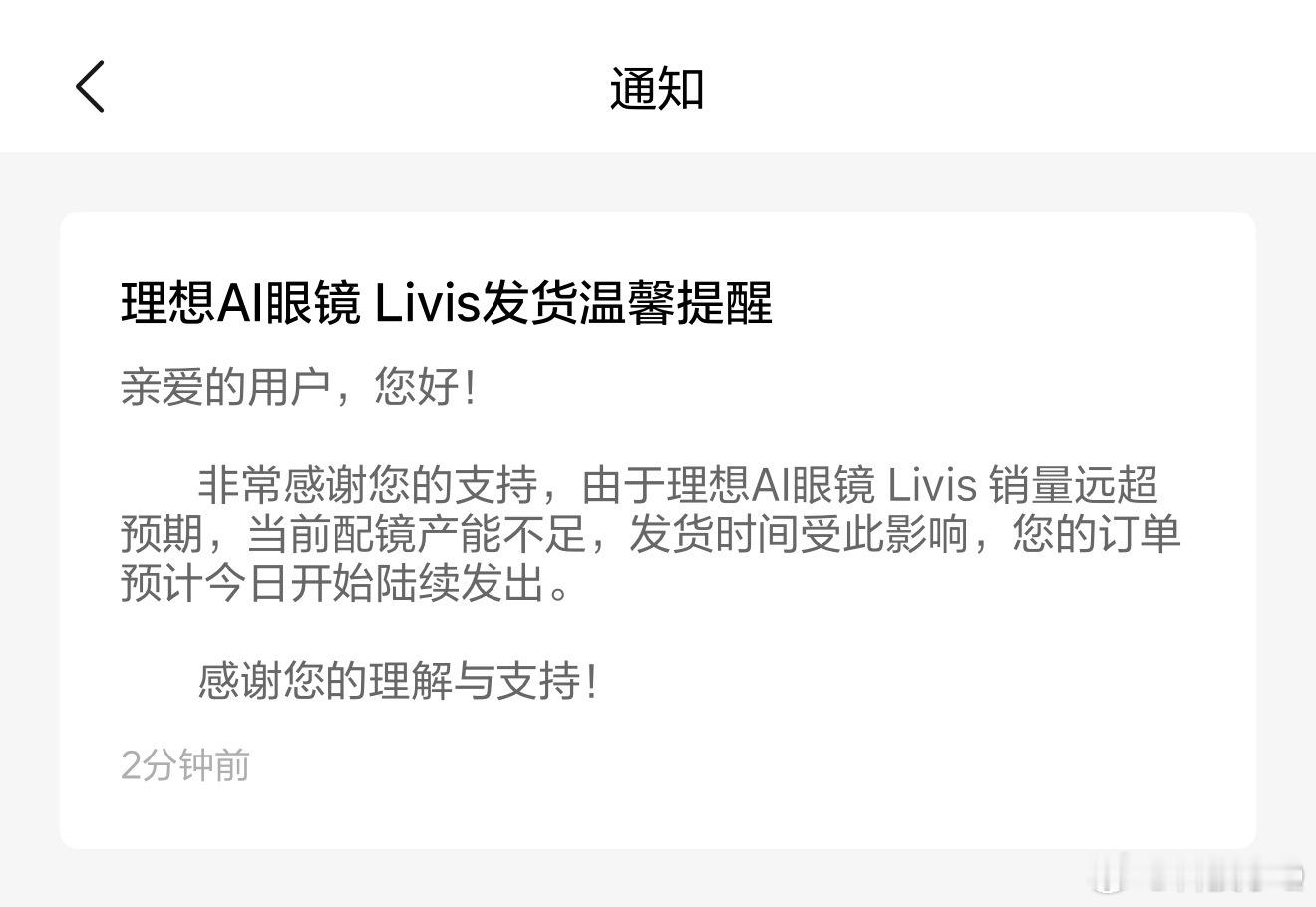 理想AI眼镜Livis发货温馨提醒!!!顺丰同步推送