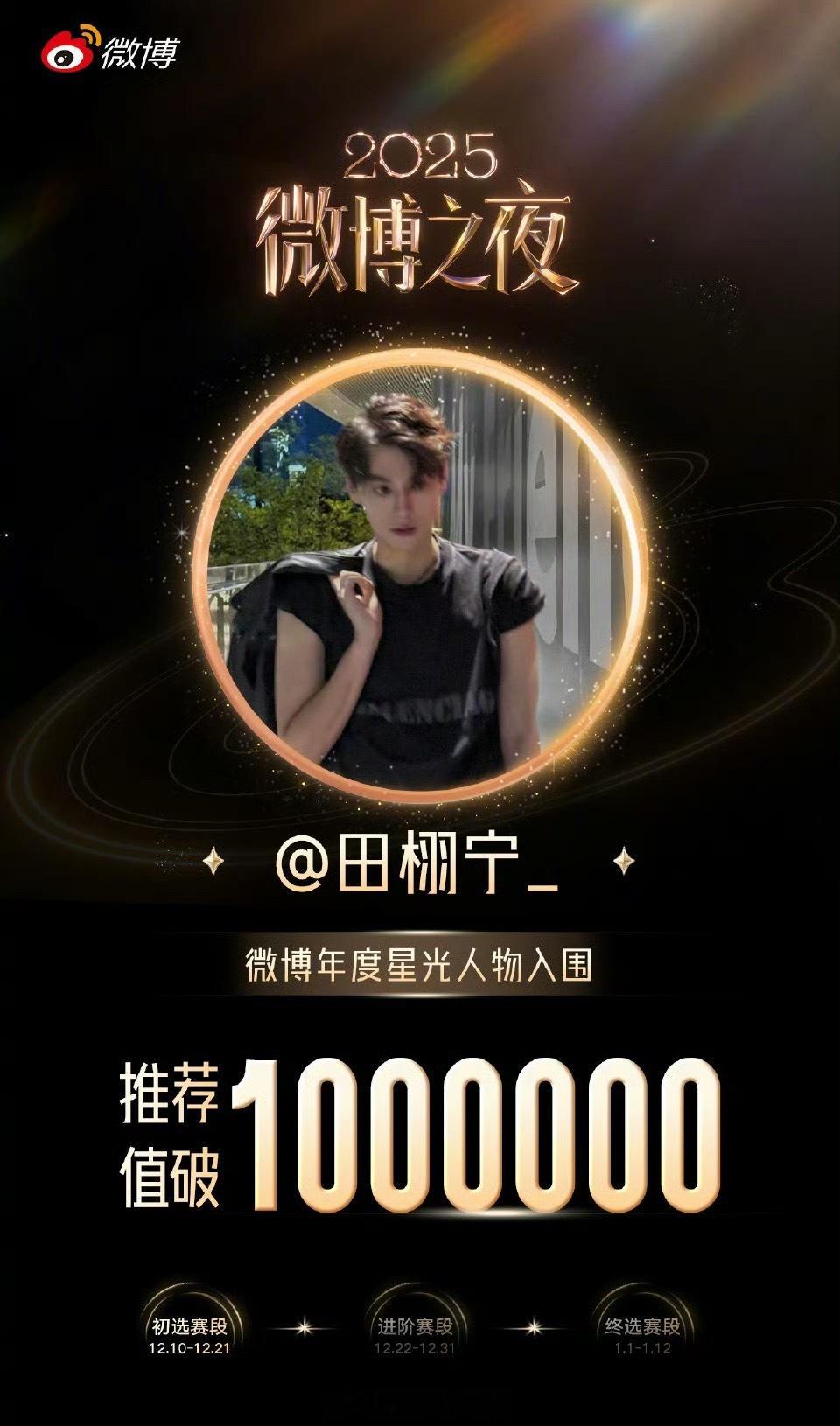 梓渝 田栩宁星光人物初选赛推荐值破100万