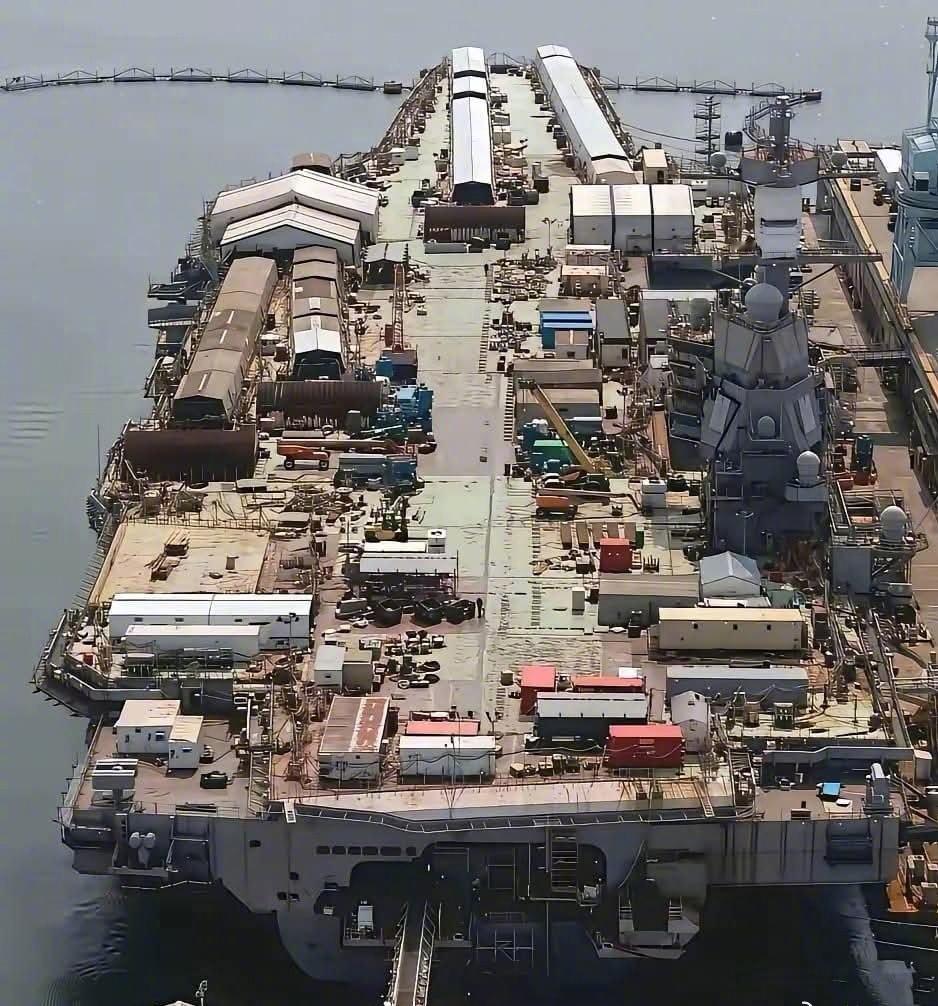 🔺图1:美国海军“肯尼迪”号核动力航空母舰,2011年开工,至今已15年头,搞到了这么一种半死不活样子。2011年2月25日正式开工,2015年8月进入铺设龙骨的全面建造阶段,2019年10月下水,原计划2022年交付。由于电磁弹射器、先进拦阻装置和升降机等关键系统存在技术问题,以及供应链断裂、工人罢工等因素,其交付时间多次推迟。最新计划于2027年3月交付,经费爆炸性增加。该舰全长337米,满载排水量11万吨,型宽78米,舰高76米。🔺图2:苏联海军“瓦良格”号航空母舰,1985年12月4日在乌克兰开工,1988年11月船体下水,建设周期中苏联解体,工程被迫中断。1995年该舰从俄罗斯海军编制中退出,移交还给乌克兰。该舰全长304米,满载排水量67500吨。1999年被中国企业购买,几经辗转运回中国,2005年4月26日在大连造船厂进行更改安装及继续建造,也不是现在的中国海军“辽宁”舰航空母舰。🔺如果“肯尼迪”号约等于“瓦良格”号,那么美国岂不是约等于另一个苏联?那么“肯尼迪”号最后岂不是大约还要被拖到中国来改装?🔺冥冥之中也许真有天意,或者美国解体,或者拖到中国来,十有八九还是两者兼备。