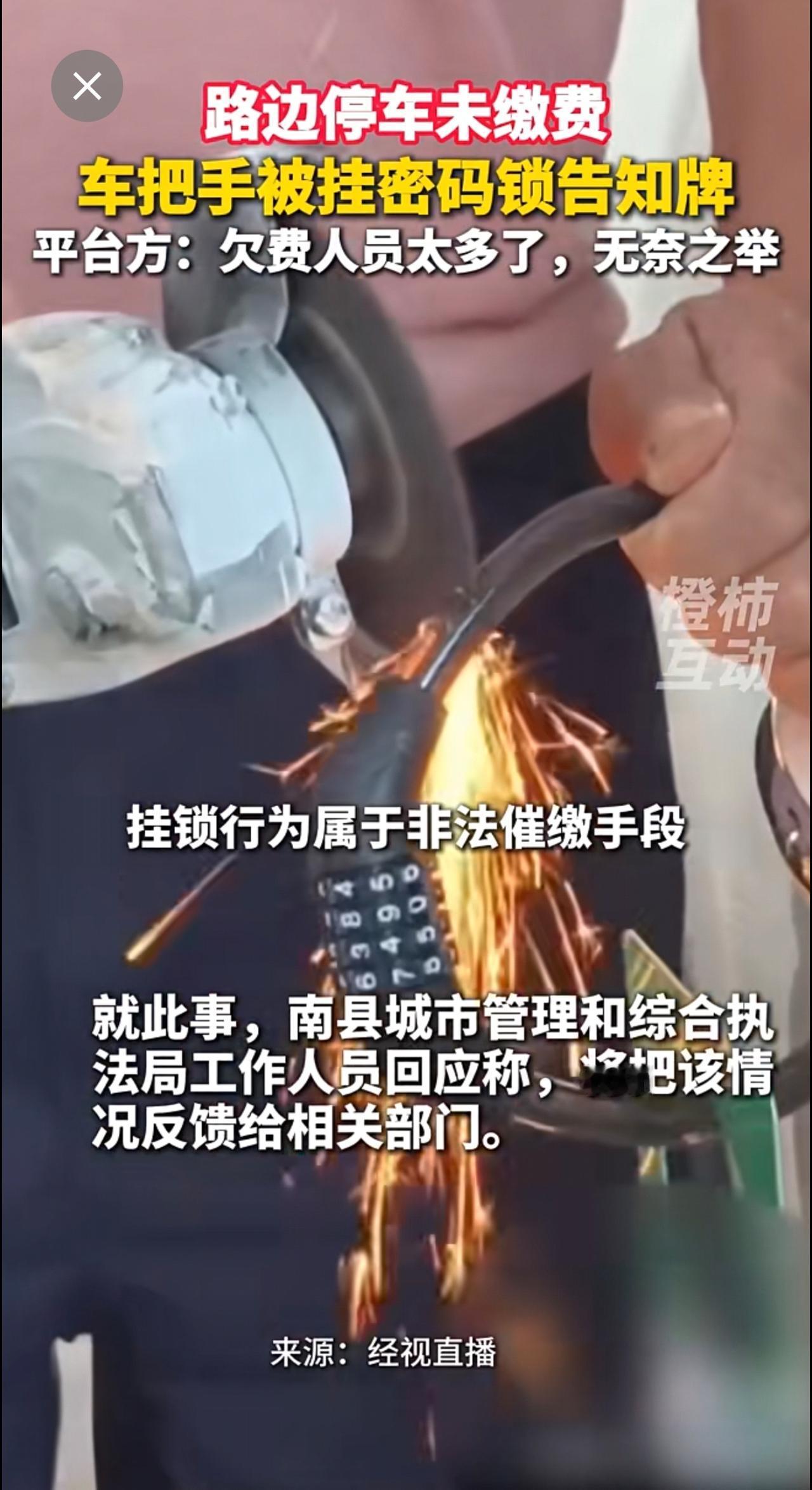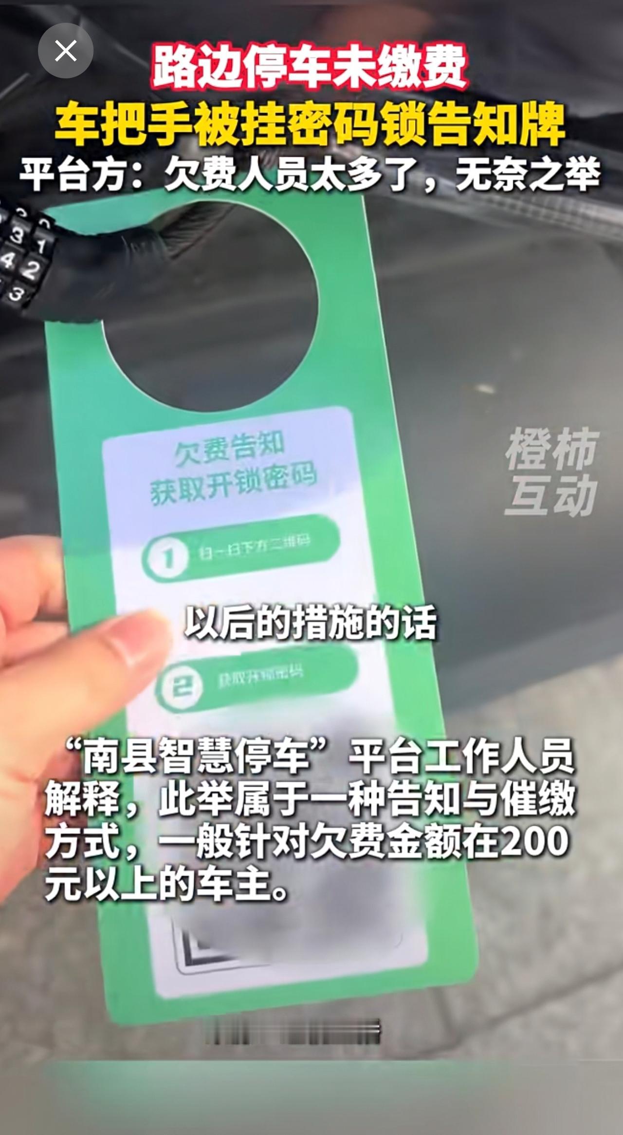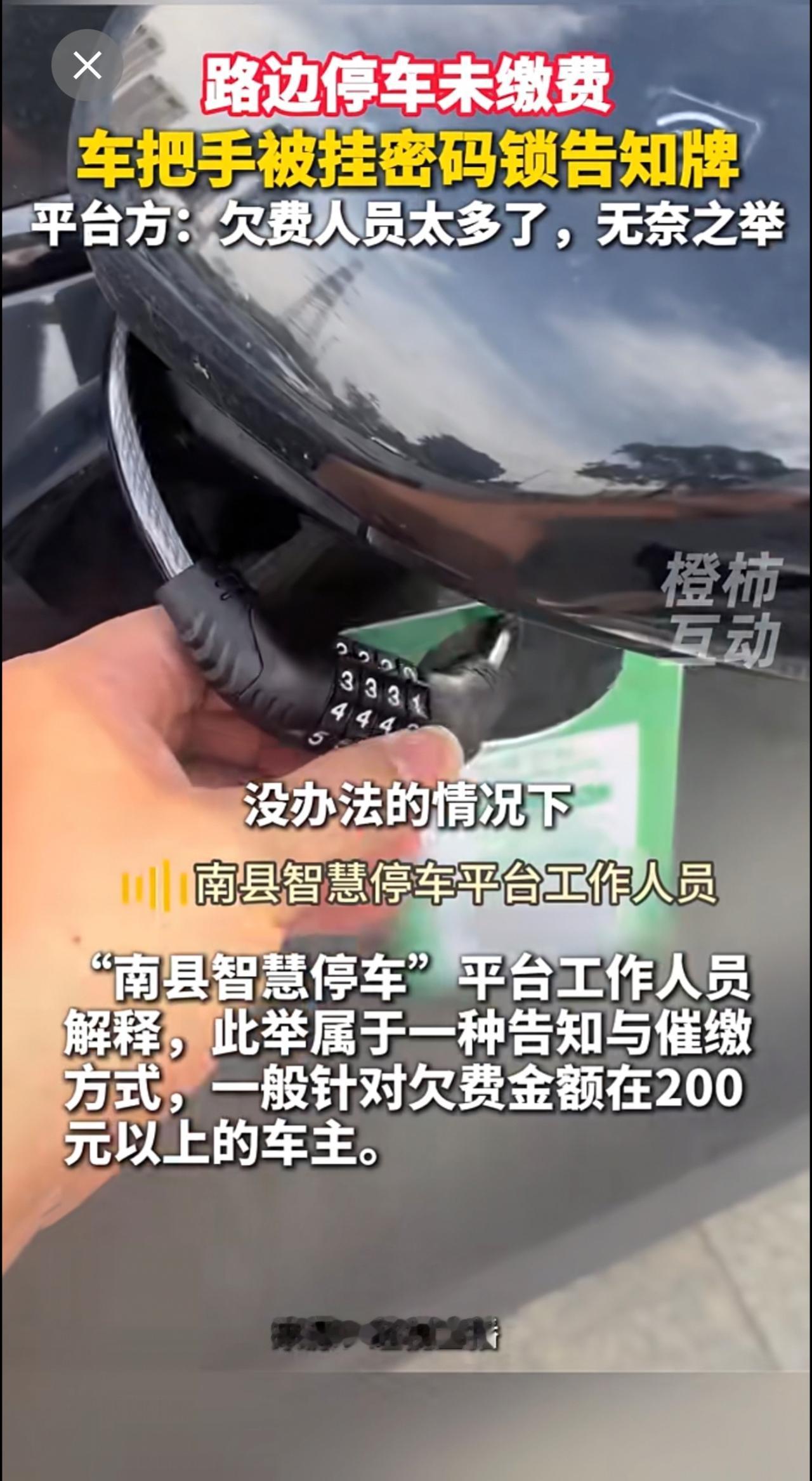 路边停车未缴费车门把手被挂密码锁,平台方:针对欠费200元以上,不影响行驶,可自