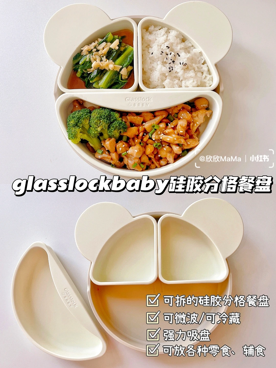 我用的餐盘是glasslockbaby家的硅胶分格餐盘,买它的原因是因为颜值真的太高了,其次是餐盘的材质,它是硅胶型的,带有强力的吸盘,宝宝用再合适不过,它的餐盘是可拆式的,平时既能装辅食也可以装各种水果零食!可微波/可冷藏!真的大爱!