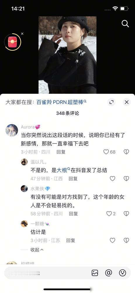 今天翠花在雪地里的一段独白,感动了自己,也感动了我们。有人就在评论区说翠花今天能说出这段话,说明翠花已经放下了。 ​ 这话听着是祝福,可细想味儿不对。怎么就一段独白,就能推断出开始新感情了?网友的想象力总是跑在事实前面。 ​ 翠花和大根离婚的事,之前也闹过一阵。两人好像是和平分开,具体原因外人都不清楚。现在突然冒出“婚内出轨”、“早就找好下家”的猜测,实在有些吓人。这些说法跟当初骂小二娃的套路一模一样。 ​ 网络舆论有个坏习惯,喜欢给离婚女性贴标签。男人离婚后“支棱起来”被夸有本事,女人要是显得开心点,就被怀疑早有预谋。这种双标太常见了。 ​ 翠花在雪地里说话,可能只是心情的一种释放。离婚后的人,有情绪波动太正常了。非要从中解读出“新恋情”,反而给当事人添麻烦。万一人家根本没这意思,岂不是被架在火上烤? ​ 大根发文章说放下了,那是他的事。翠花放没放下,只有她自己知道。感情的事,外人哪里说得清。劝翠花别公开新感情,看似为她好,其实是在预设一个可能根本不存在的“罪名”。 ​ 网上动不动就“人设崩塌”,可普通人过日子,哪来什么人设。不过是想好好生活,却要被各种解读。离婚已经够难了,还要被这么多双眼睛盯着,换谁都累。 ​ 那些阴谋论真的没意思。过好自己的日子比啥都强。翠花要是真遇到合适的,大大方方相处也没错。关键是要对自己负责,问心无愧就好。 ​ 别老拿“原配最好”说事。过得下去谁愿意离婚?既然分开了,各自安好就是最好的结局。 ​ 说到底,别人的家务事,外人少掺和。多一份理解,少一份猜测。让翠花安安静静过自己的日子吧。 ​ MCN双量进阶计划