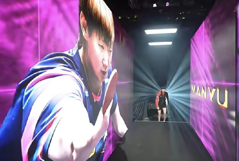WTT香港年终总决赛,比赛开始前选手入场会播放每个人都不同的对应海报和音乐。 尤其王曼昱临场时,非常动感的音乐,搭配大屏幕上同样动感的王曼昱海报,有种女战士上战场的感觉了! 王曼昱女单首秀创造对张本美和九连胜,又一次抗日成功! 继续加油!