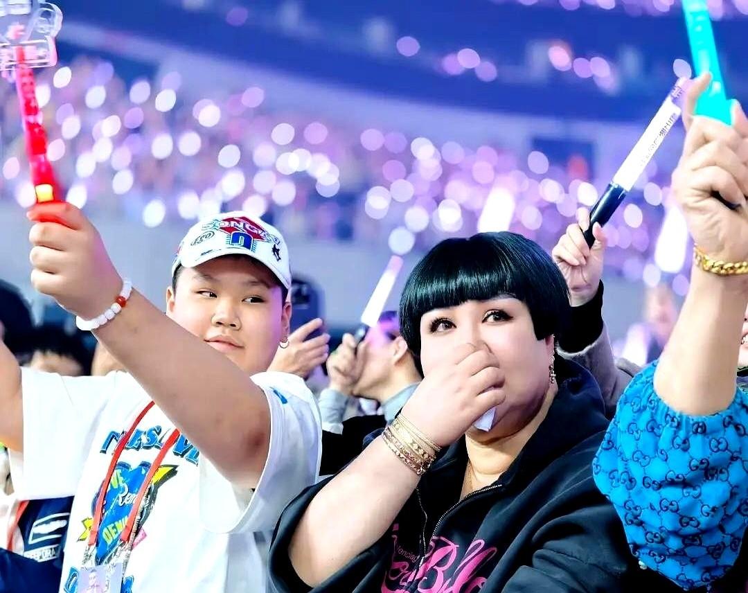 王惠带儿子看演唱会,一身行头太抢眼。 她那个“锅盖头”短发,配着大红外套,妆容挺精致。 最绝的是手腕上,四个大金镯子,扒出来一个就超10万。 这贵气,挡都挡不住。 10岁的儿子郭汾阳,耳朵上戴着定制金耳环,穿搭风格一看就有他爸郭德纲的范儿。 人现在读着国际,课余时间还练相声基本功呢。 王惠现在是德云社的幕后大管家,她公开说过希望儿子能接班。 所以带他去西安看演唱会,坐VIP区,就是让他提前熟悉这个圈子,见见世面见见世面。 这高调亮相,既是宠爱也是一种培养吧。毕竟自己挣的钱,怎么花别人也管不着。