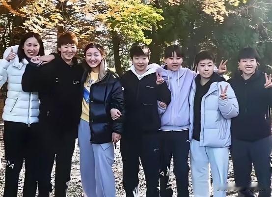 体坛女孩们合个影,一字队齐刷刷站立,洋溢着青春的朝气,氛围太和谐了。 陈梦的笑容最甜美,莎莎最可爱,个子最高的那位是谁呢?