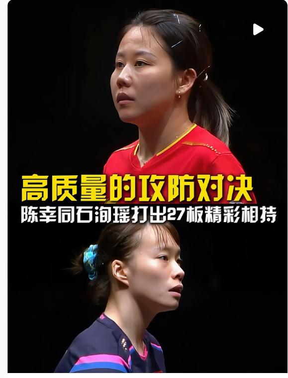 陈幸同这场球打的不容易,原以为要被小队友压着打,没想到越打越稳挺了过来。首局被石洵瑶压着打,11-7输得没脾气,第二局3-0开局后连得8分扳回一局,第三局又被对手追着打,比分胶着到最后。赛前还有去澳大利亚执教的谣言,谁知道她根本没受影响,第四局大比分领先被追平,最后咬牙12-10拿下,后面两局越打越顺,14-12、11-8连赢两场。这一路磕磕绊绊,从落后到逆转,陈幸同这股子韧性,可不就是国乒人该有的样子么?