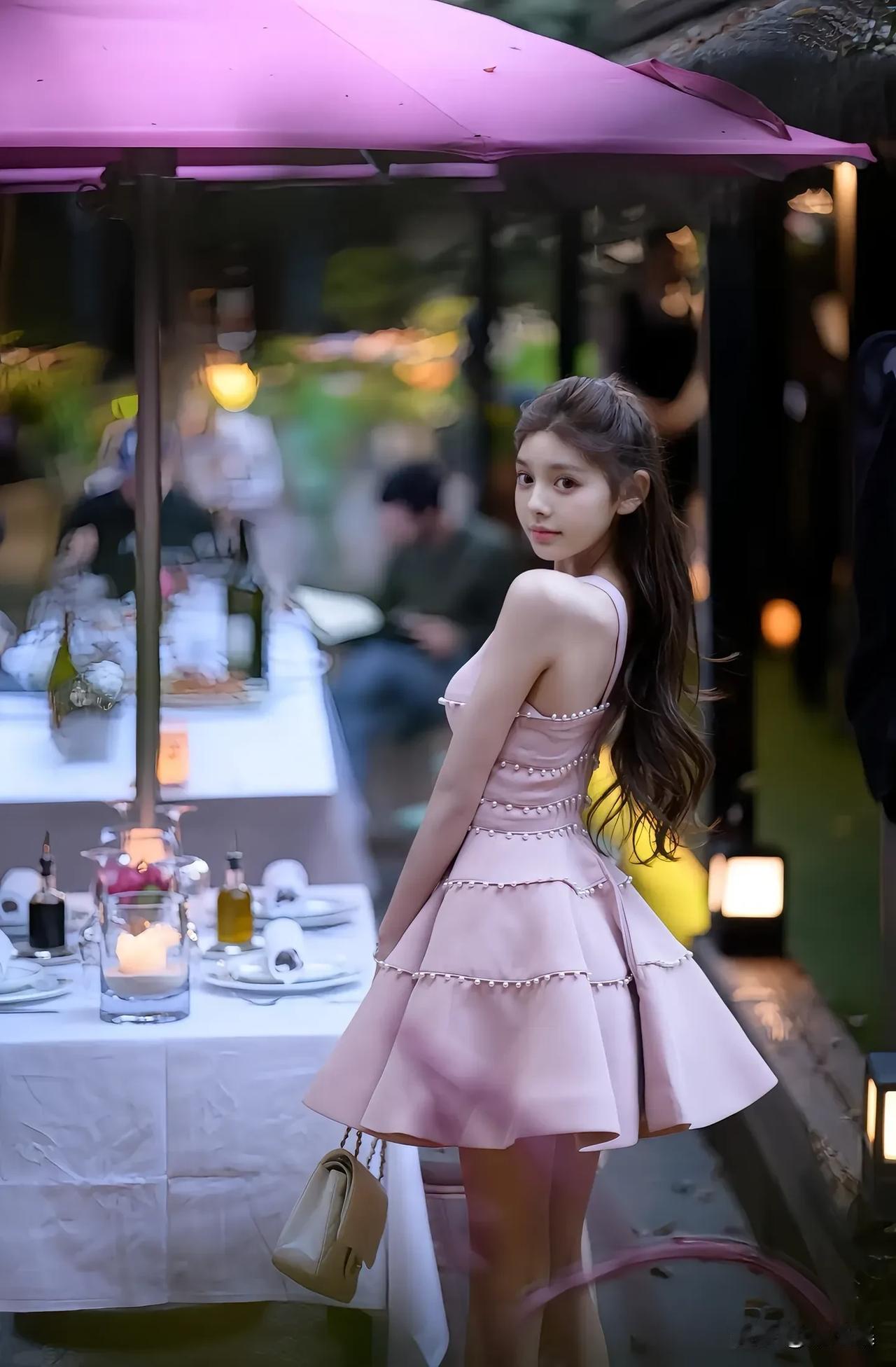 城市天际线下的温柔侧颜,轻纱飘逸,静谧如诗。