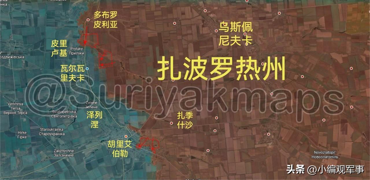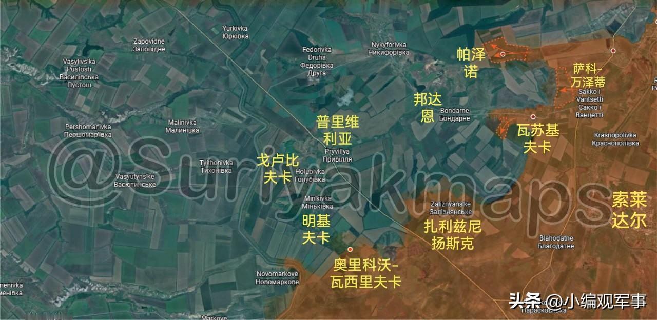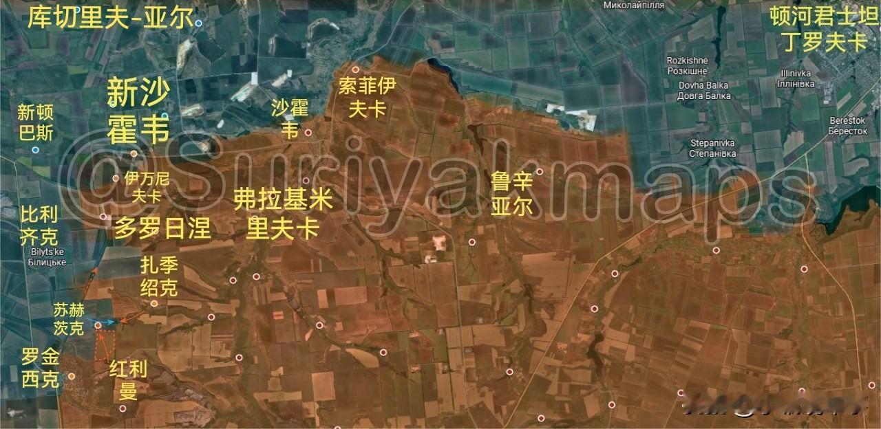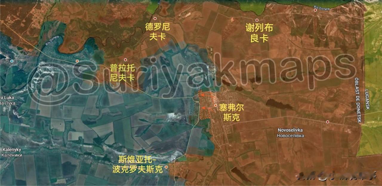 12月10日俄乌最新战报: 1.顿涅茨克州北部前线: 过去六天里,俄军开始对亚罗瓦村发动新一轮进攻(此次从西部推进),并攻入了该村庄(图一)。 2.塞弗尔斯克前线: 俄军继续在塞弗尔斯克市推进,他们越过巴赫穆托夫卡河,直至佐雅·科斯莫德米扬斯卡娅街。目前,塞弗尔斯克市约90%的区域已被俄军控制(图二)。 3.索莱达尔方向前线: 过去十天里,俄军完全控制了帕泽诺村,并继续攻占该村与瓦苏基夫卡村之间的战壕(期间还向南取得了一些进展)(图三)。 4.顿河君士坦丁罗夫卡前线: ①俄军继续在顿河君士坦丁罗夫卡市南部推进,控制了斯塔拉桑图里夫卡和斯塔雷塞利什切地区的新区域,并进入了顿河君士坦丁罗夫卡火车站区域(图四)。 ②俄军未能巩固“梅塔卢尔”别墅区以北的战壕,该区域目前仍处于争夺状态(图四1)。 5.沙霍韦前线: ①过去三天里,俄军攻入了苏赫茨克村,与此同时,俄乌两军继续在扎季绍克村西南部的别墅区交战(图五)。 ②俄军开始从南部沿铁路向多罗日涅镇推进(图五)。 6.季米特洛夫和红军村前线: ①俄军突破了乌军在季米特洛夫市中心区域以北的最后防线,沿着索博尔纳街深入推进,几乎占领了40号街区(图六2)。同时,俄军已推进至该市北部的达尔科街,到达了彩弹俱乐部附近(图六3)。 ②俄军开始进入季米特洛夫市和红军村市之间的人工林区(图六4)。 7.扎波罗热州前线: ①俄军完全夺回了多布罗皮利亚村,并在瓦尔瓦里夫卡村以东取得了新进展(图七)。 ②过去三天里,俄军在胡里艾波勒镇北部的纳别日纳街取得了新进展,并渡过盖丘尔河,控制了皮什查纳街和大街的新路段(图七)。