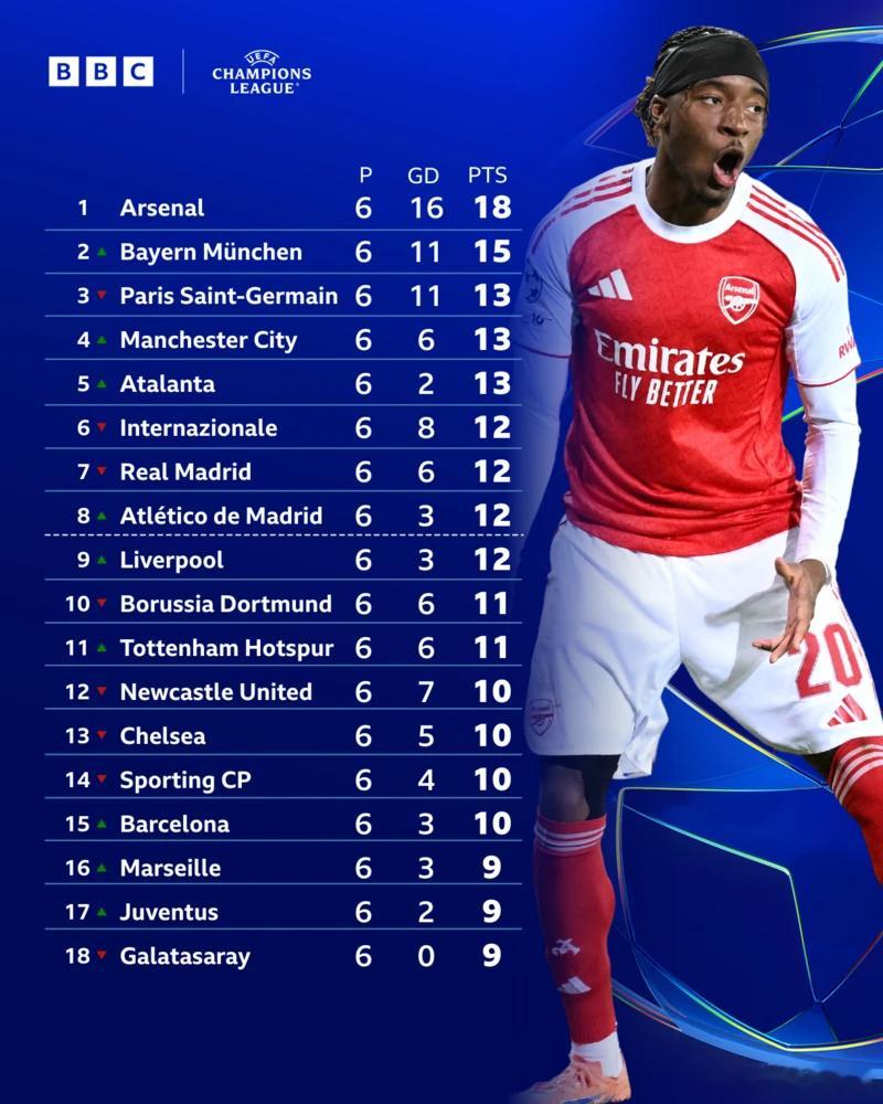 戈登这个赛季的点球命中率100%,本季7个俱乐部进球中5个是点球,他也成为继希勒后纽卡首位单季在欧冠进球至少5球的球员。“喜鹊”客场战平勒沃库森。阿森纳继续在欧冠霸榜,又一场实现零封的胜利,六战全胜仅丢一球。他们上演“双马盘槽”:马杜埃凯世界波+独中两元,马丁内利成为俱乐部首位在欧冠连续5场破门的球员。只有三名16岁或更年轻的英格兰球员在欧冠亮相过,他们都是枪手,今晚16岁的中卫萨尔蒙迎来首秀。阿森纳队无惧后防线伤兵满营,首发的新中卫组合是因卡皮耶+诺尔高。皇马vs曼城的焦点战双方踢得很开放,瓜迪奥拉与阿隆索的首次师徒较量。两队防线上都有“定时炸弹”:曼城的努内斯幸运的是开赛没有丢点只是禁区边的任意球,皇马的吕迪格却再次犯错。“银河舰队”的罗德里戈与左后卫卡雷拉斯表现抢眼,只是阿隆索太依赖边锋的发挥,边中结合的套路不够丰富,姆巴佩缺阵的情况下没给贡萨洛和恩德里克提供战术支持。应该给少帅阿隆索更多时间。曼城近5次做客伯纳乌首次获胜,如果冬窗补强右后卫、罗德里能健康参赛,他们本季欧冠仍然是争冠热门之一。