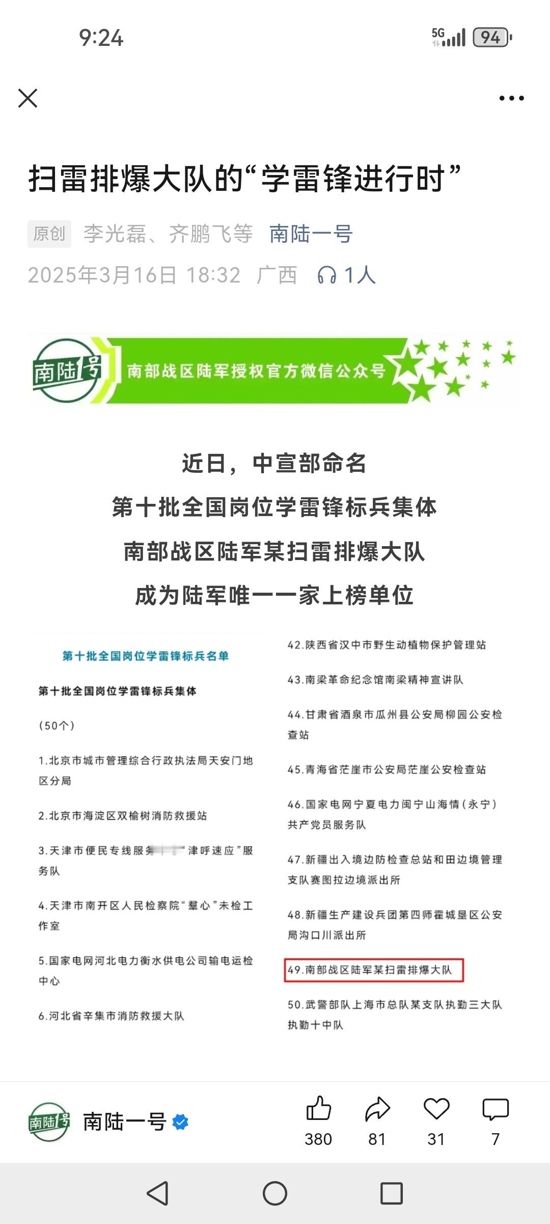 南部战区陆军扫雷排爆大队,全军只发现这一例,印象中是编在75某部,不是战区陆军直属大队,全军孤例还有独立骑兵营,独立步兵营等,分别在76某部和77某部,理论上每个集团军都有的教导大队也在这类部队。