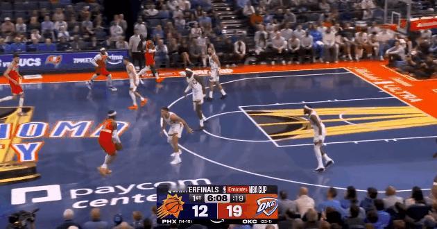 予取予求!太阳拿亚历山大没办法! 在今天NBA季中锦标赛雷霆对阵太阳的第一节比赛中,亚历山大突破后靠着阿伦轻松完成抛投得分,并且还造成犯规打成2+1! 仅仅半节比赛,雷霆就已经22-12领先太阳10分!如今的雷霆,真如当年宇宙勇一般,联盟独一档!