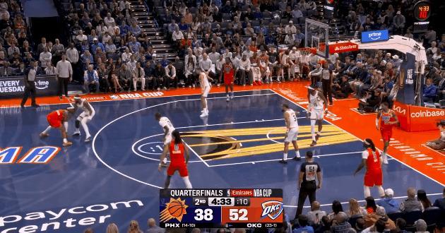 真强!今年的亚历山大堪称无解! 在今天NBA季中锦标赛雷霆对阵太阳的第二节比赛中,亚历山大刚一上场就里突外投连得五分,帮助雷霆再次拉开比分! 目前为止,亚历山大7投5中已经拿下14分3助攻!在将三分能力彻底开发出来后,如今的亚历山大就是联盟独一档的存在!