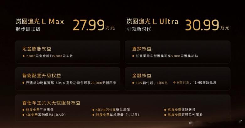 岚图岚图追光L华为27.99万起岚图追光L新款追光L上市,分Max版与Ultr