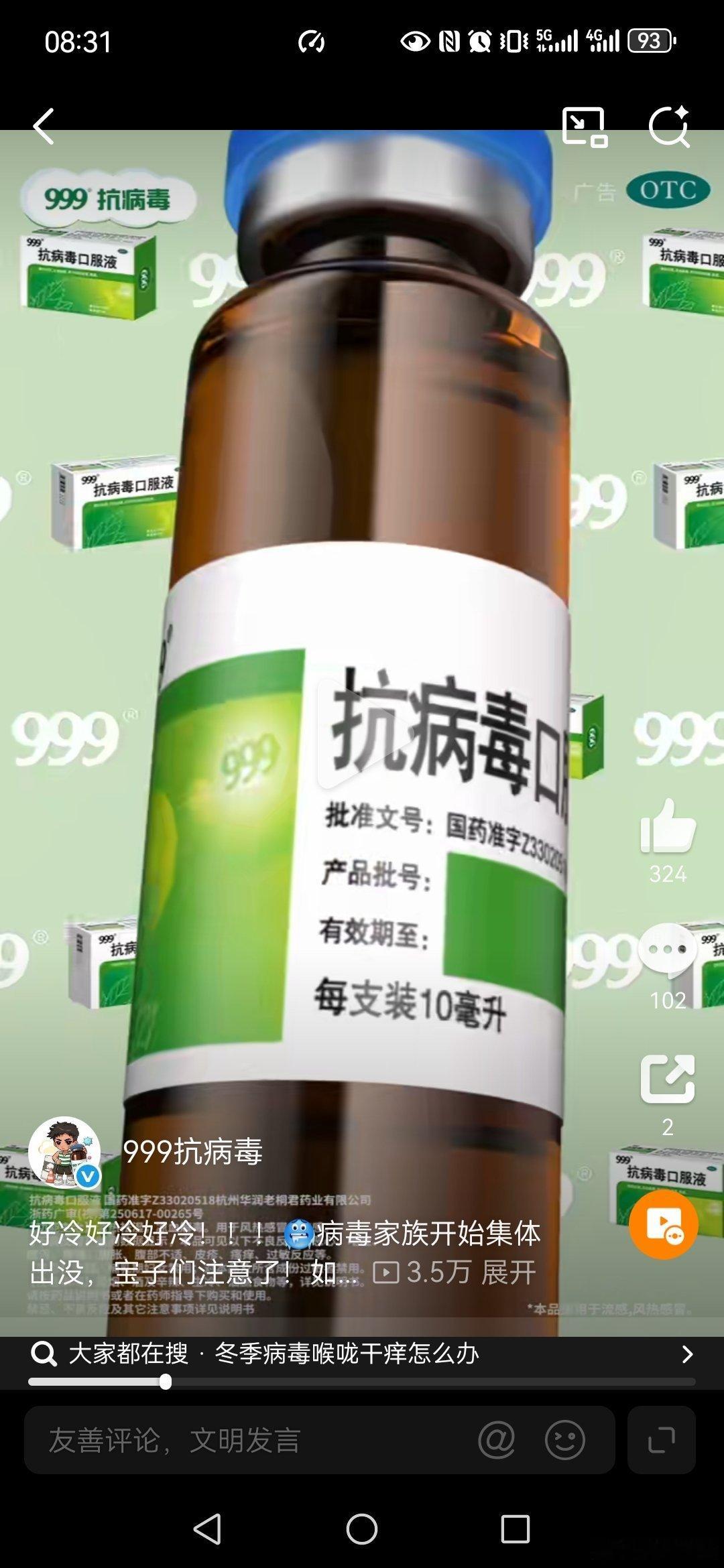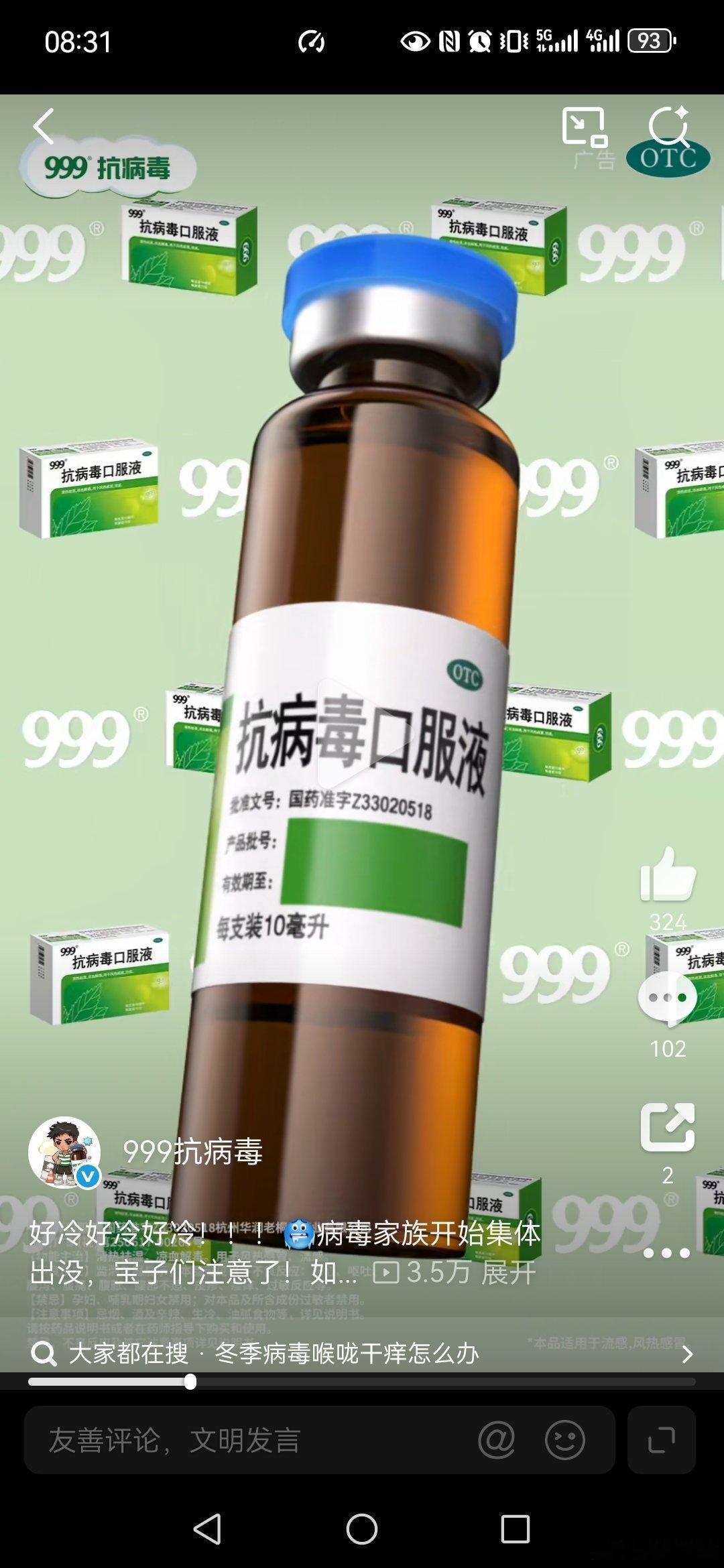 谁家好人见面干999抗病毒啊 冬天里,我的见面社交就是点个头,表示问候,生怕近距离接触传播病毒,我给家里也准备了999抗病毒口服液,因为之前服用后发现抗病毒效果好,不怕感冒发热流鼻涕。