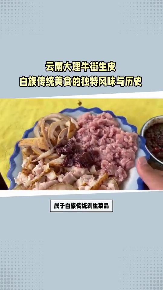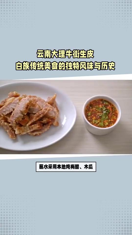 云南大理牛街生皮,白族传统美食的独特风味与历史。 牛街生皮是云南大理洱源县牛街乡的特色美食,属于白族传统剁生菜品。以生猪皮和生肉为主料,经稻草燎烤后切丝,搭配特制蘸水食用。 牛街乡有一道标志性美食--"牛街生皮",以极致独特的风味成为当地饮食文化的核心符号。选用新鲜宰杀的生猪,取其脊背、后腿等部位的生肉与生猪皮,搭配特制蘸水--以辣椒面、花椒、蒜末、香菜、酱油、醋等调和,入口脆嫩弹牙,鲜辣回甘交织,粗犷的吃法里藏着当地人们对食材本味的极致追求。 与普通生皮不同,牛街生皮在制作时会先用菜油清炸至八九成熟,形成熟生皮的独特风味,肉质更易被外地游客接受。蘸水采用本地炖梅醋、木瓜醋等十余种配料调制,酸辣鲜香,尤其以三线肉部位最为鲜嫩。这道菜在白族文化中象征吉祥,多用于宴请宾客,其历史可追溯至元代。云南白族菜 白族庭院美食 白族特色农家菜 白族私房菜馆 白族生皮 白族菜探店 美食