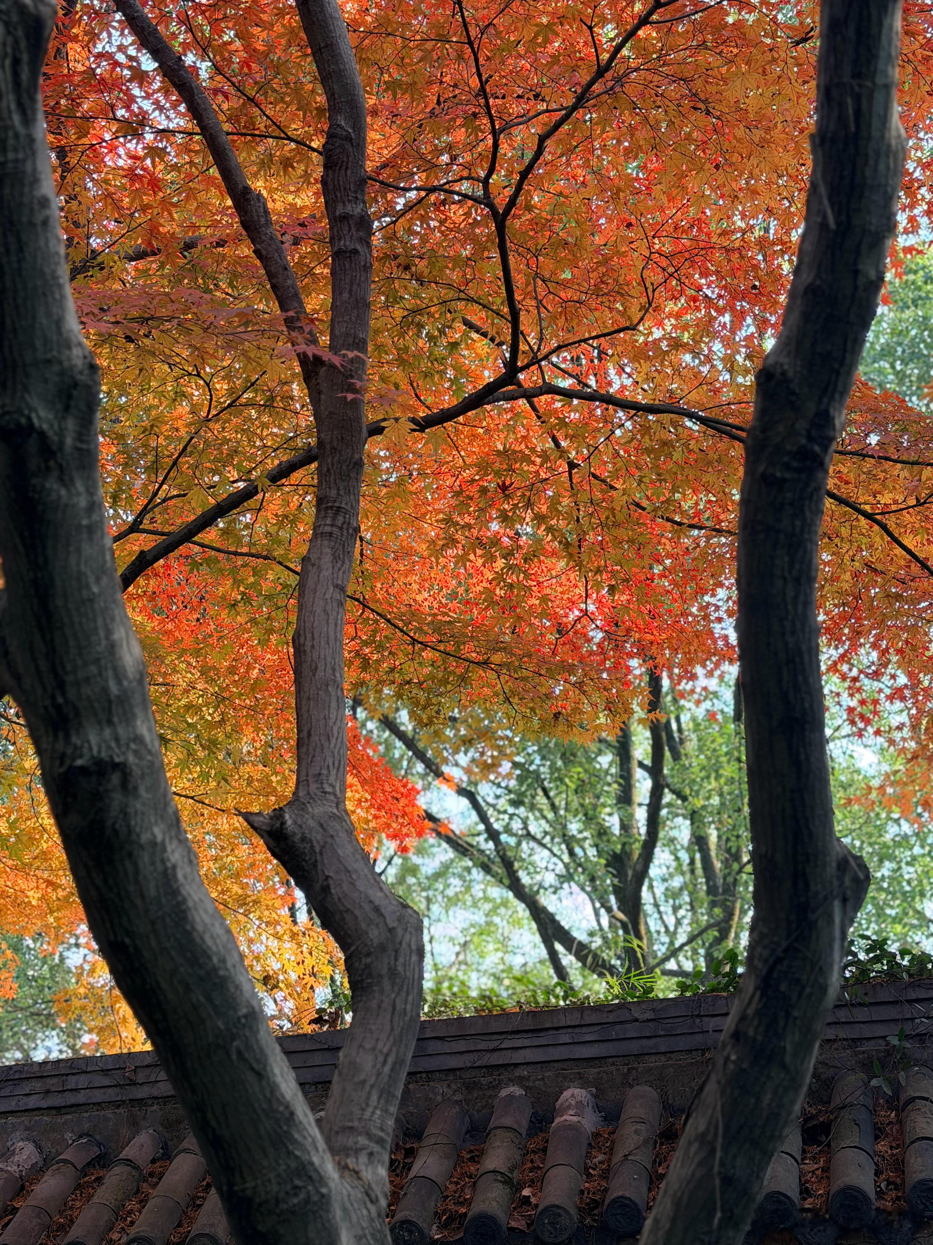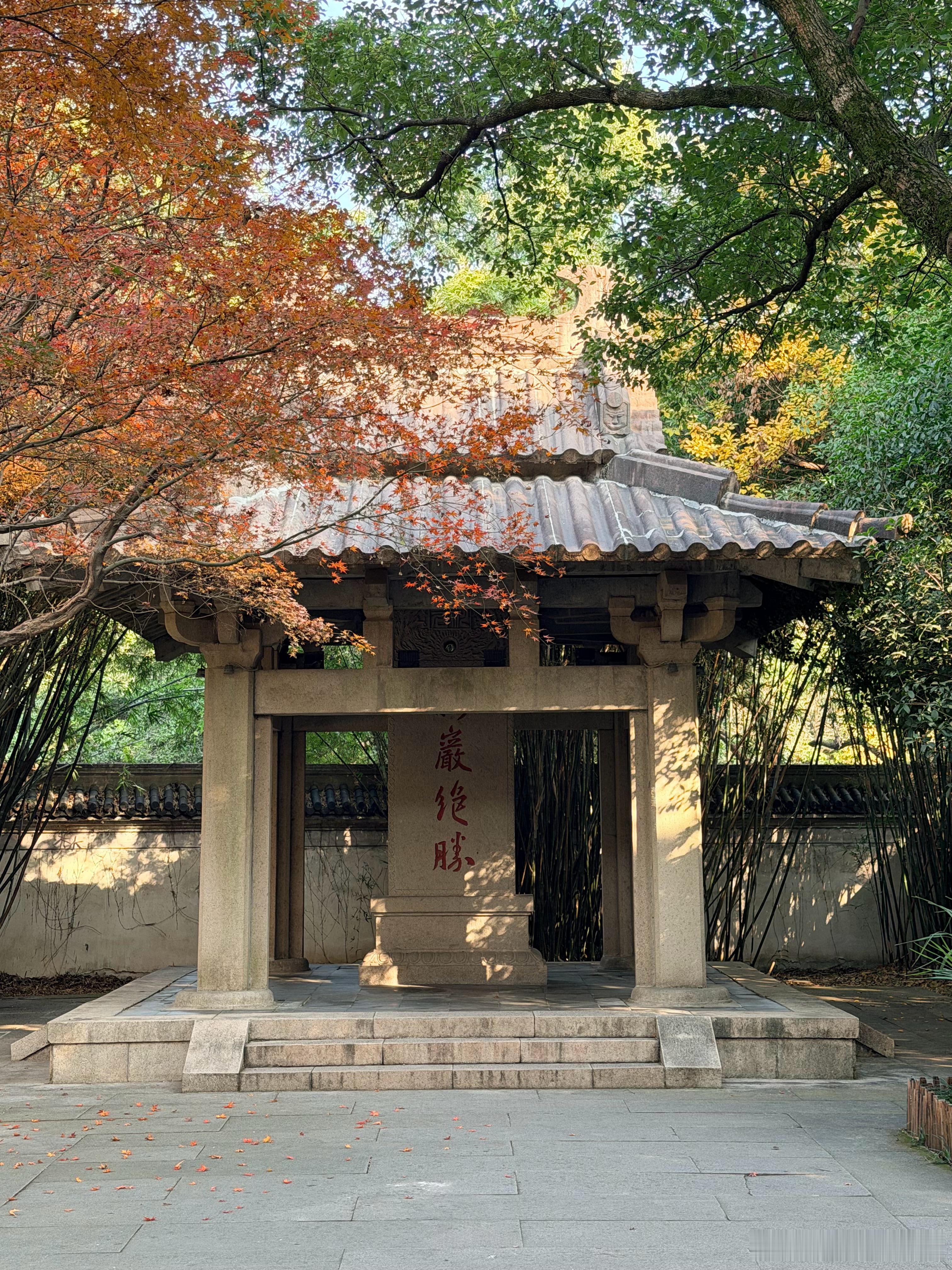 绍兴柯岩风景区,枫叶好美啊。徐老师是绍兴人,一边走一边说:“所以我一直就对京都不感冒,京都看的也是这些,但价格比这贵一百倍,人也多一百倍。”枫叶 绍兴·柯岩风景区
