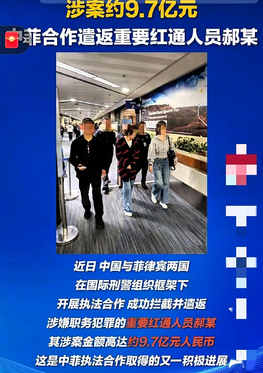 好消息!好消息! 涉案9.7亿!前青岛首富的老婆郝斌,终究没逃掉这张全球天网!据悉他 手握公司大权,本该守好底线,她却伙同他人挪用公款近10亿,老公还因违规被证监会禁入市场10年。 揣着巨额赃款逃到境外藏了这么久,以为经新加坡转菲律宾就能溜去美国,殊不知科技和跨国协作早堵死了所有退路。 这事儿最解气的不是抓了一个逃犯,而是打破了“有钱就能逍遥法外”的幻想。 不管曾经多风光,不管逃到天涯海角,只要碰了公家的钱、害了公众的利,迟早要为自己的贪婪买单。 现在跨国反腐越来越严,外逃根本成了死路一条。 大家说他会是死刑吗?