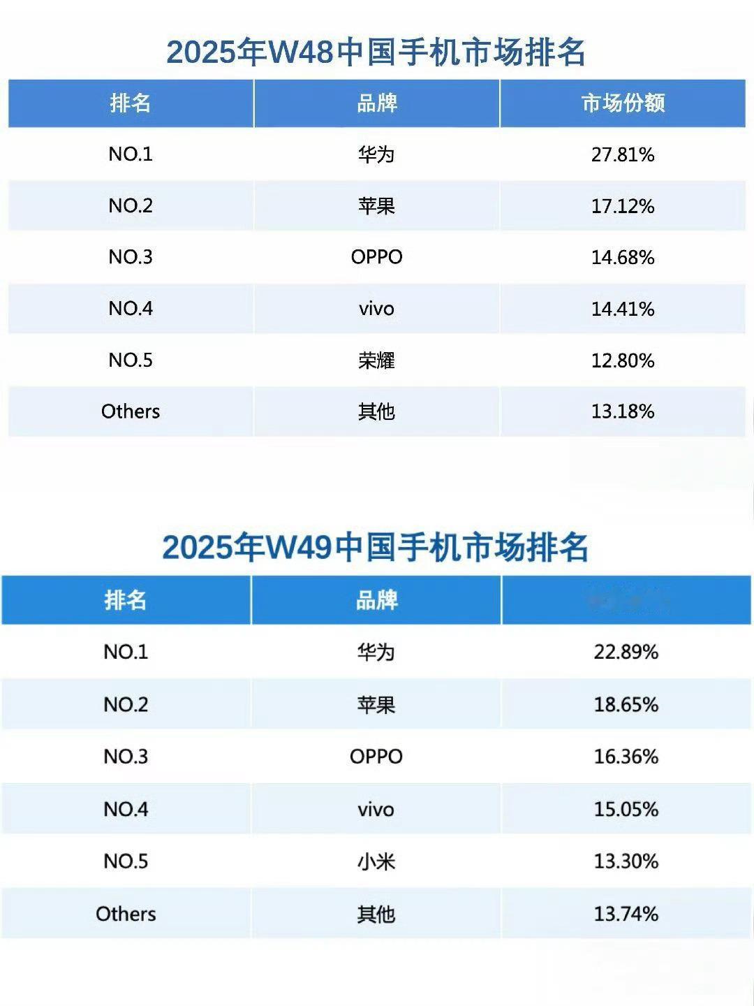 华为手机连续两周获得了销量第一看来Mate80系列深受大家喜欢,这销量真的很棒,市场份额都超过了20%以上,也是唯一超过20%份额的厂商,而安卓厂商战况还是很焦灼,从13%-16%这个区间,严格说差异并不大,销量很平均,安卓四大厂为了会是谁杀出重围,目前来看还真不好说。科技数码数码资讯