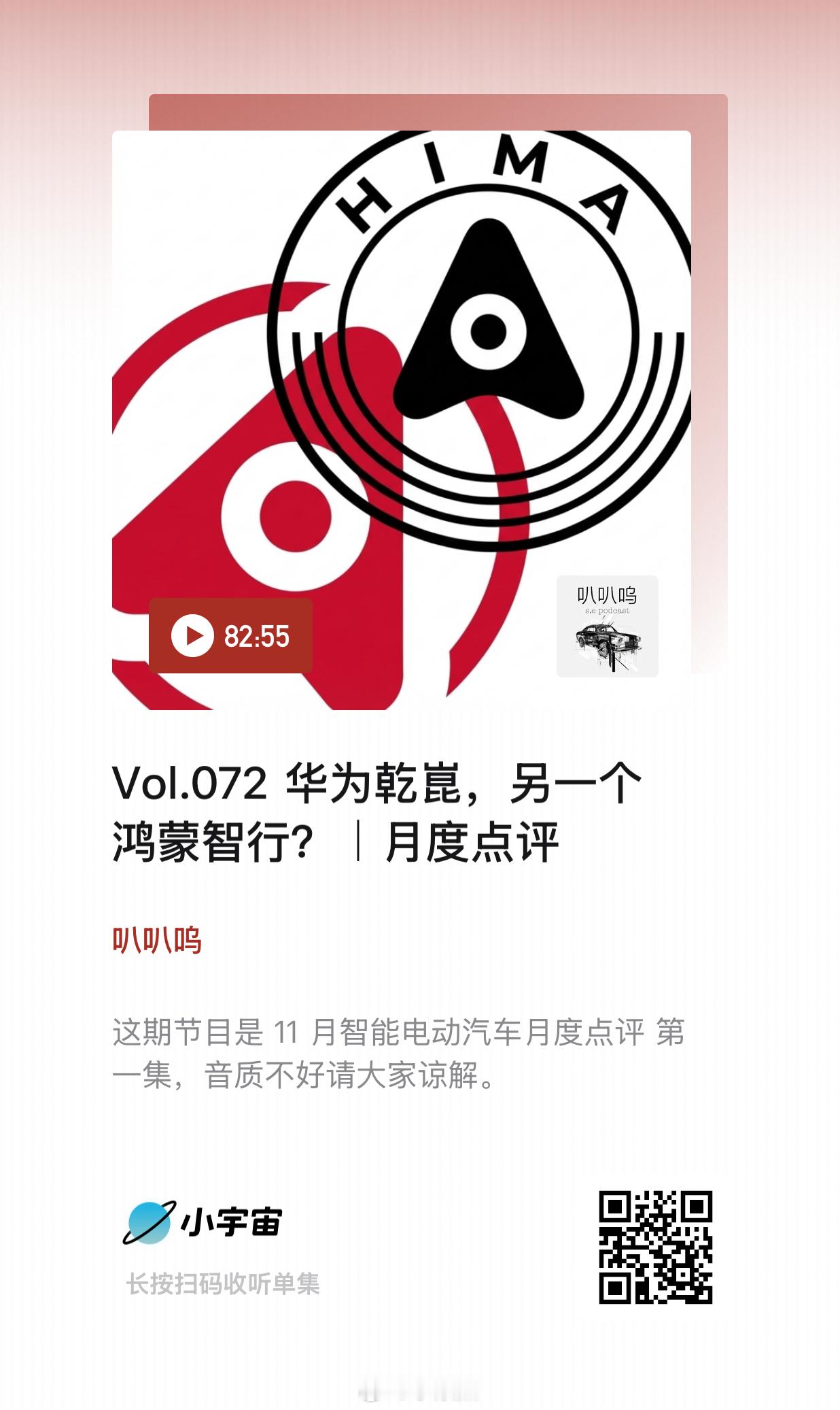 【叭叭呜 播客】Vol.072 华为乾崑,另一个鸿蒙智行?华为乾崑宣布了联合共创的新品牌两境,让外界有很多问号。鸿蒙智行宣布五界深化合作战略,向外界秀出肌肉。这期播客,我们深入讨论了华为乾崑的 HI Plus 模式,究竟是什么,是不是另一个鸿蒙智行?华为乾崑、鸿蒙智行的新变化,对华为汽车业务将会有哪些影响。节目最后,少军和肉呆还分析了极氪 9X 这款老钱风大车为什么销量出色。本期主播: 收听链接小宇宙:网页链接喜马拉雅:网页链接苹果 Podcast:网页链接