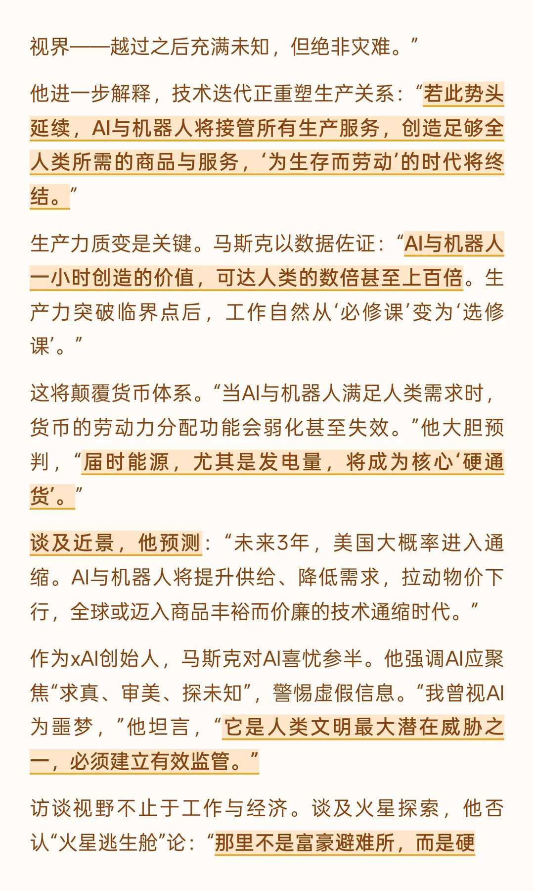 马斯克的很多预言都验证了。这个访谈非常值得一听。