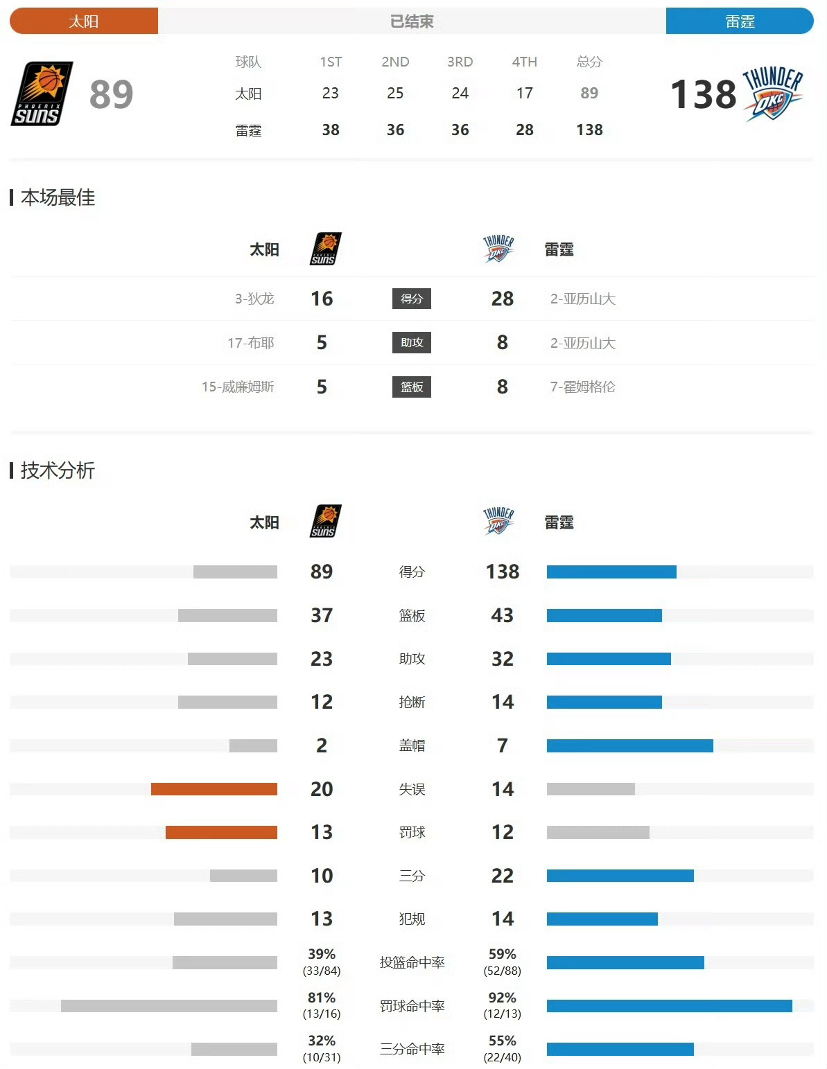 雷霆大胜太阳49分 简直是“屠宰”现场!雷霆主场138-89狂胜太阳,晋级NBA杯半决赛!开局11-2,首节领先15分,半场轰下74分,三节打卡下班……全员状态拉满,每一个回合都看得人热血沸腾,现在的雷霆,不仅有天赋,更有让人窒息的统治力!NBA破界玩家