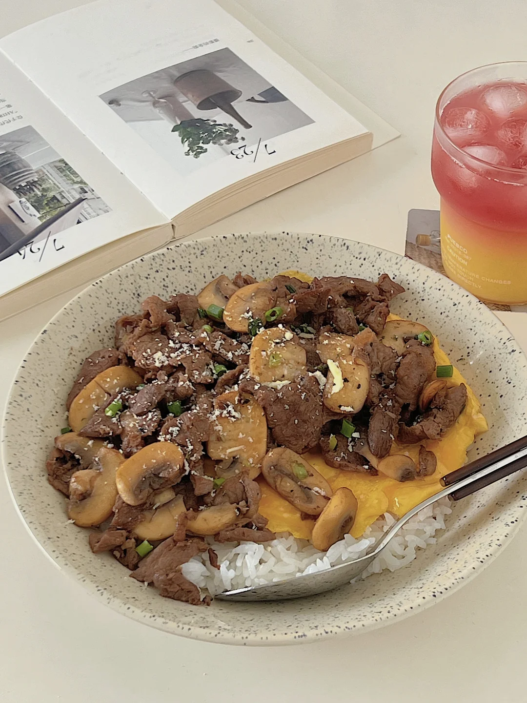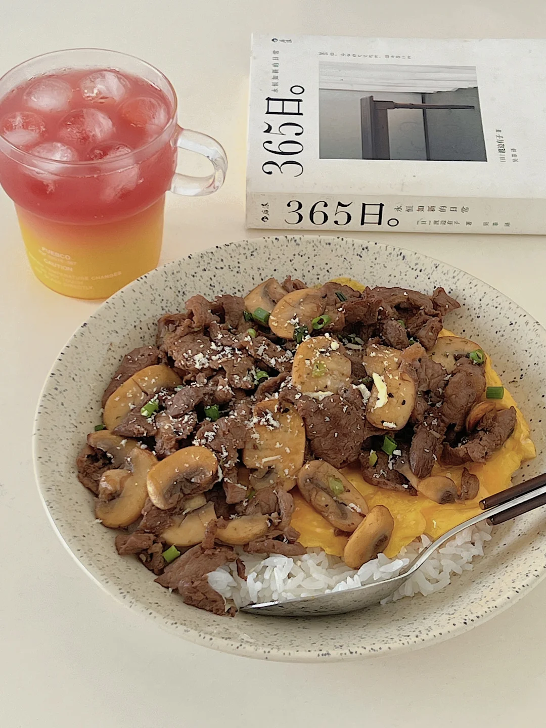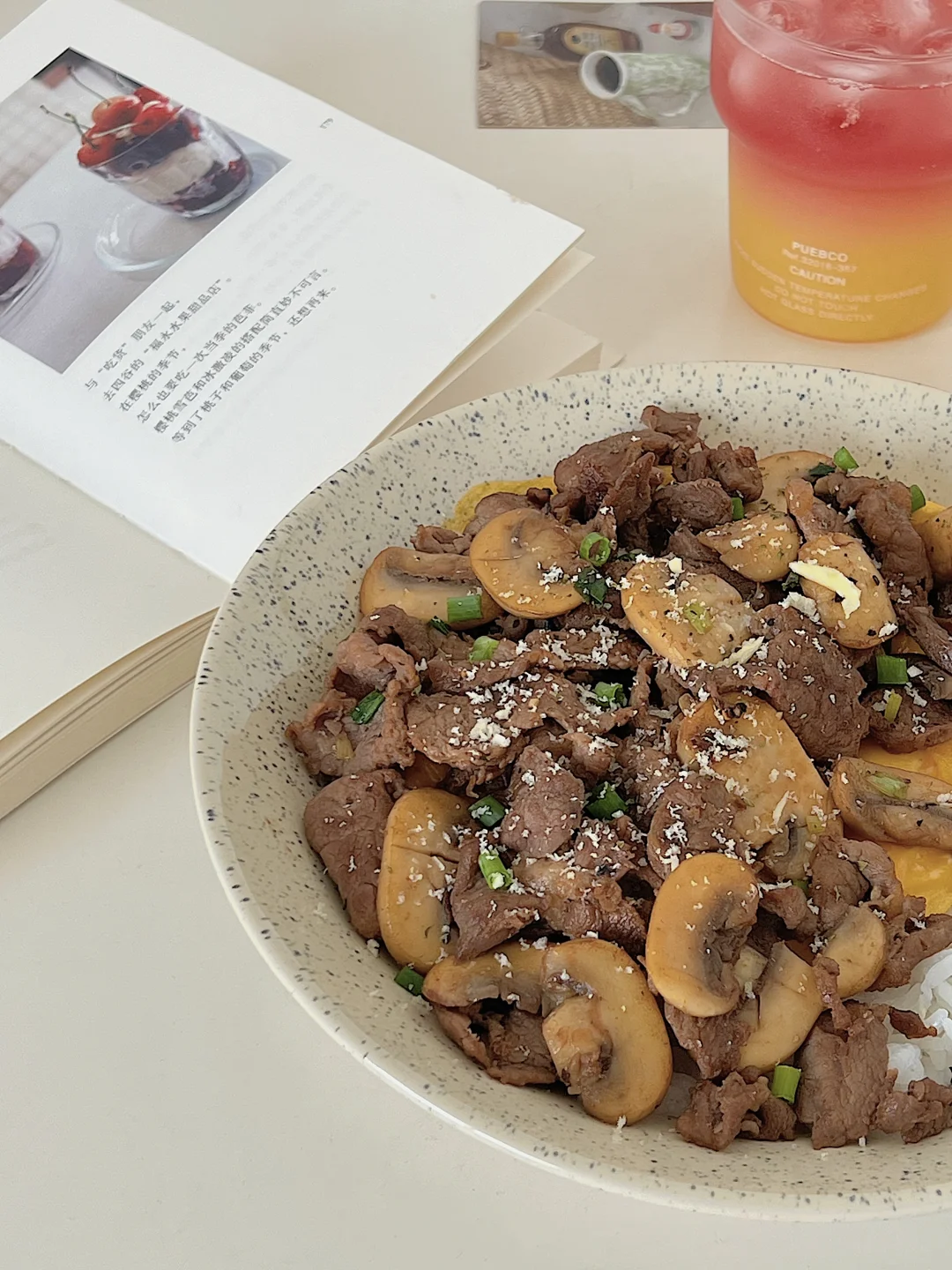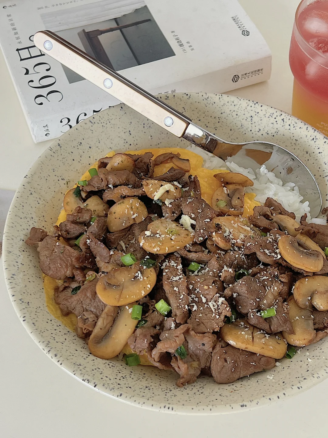 今天吃牛肉口蘑盖饭,真的好简单啊