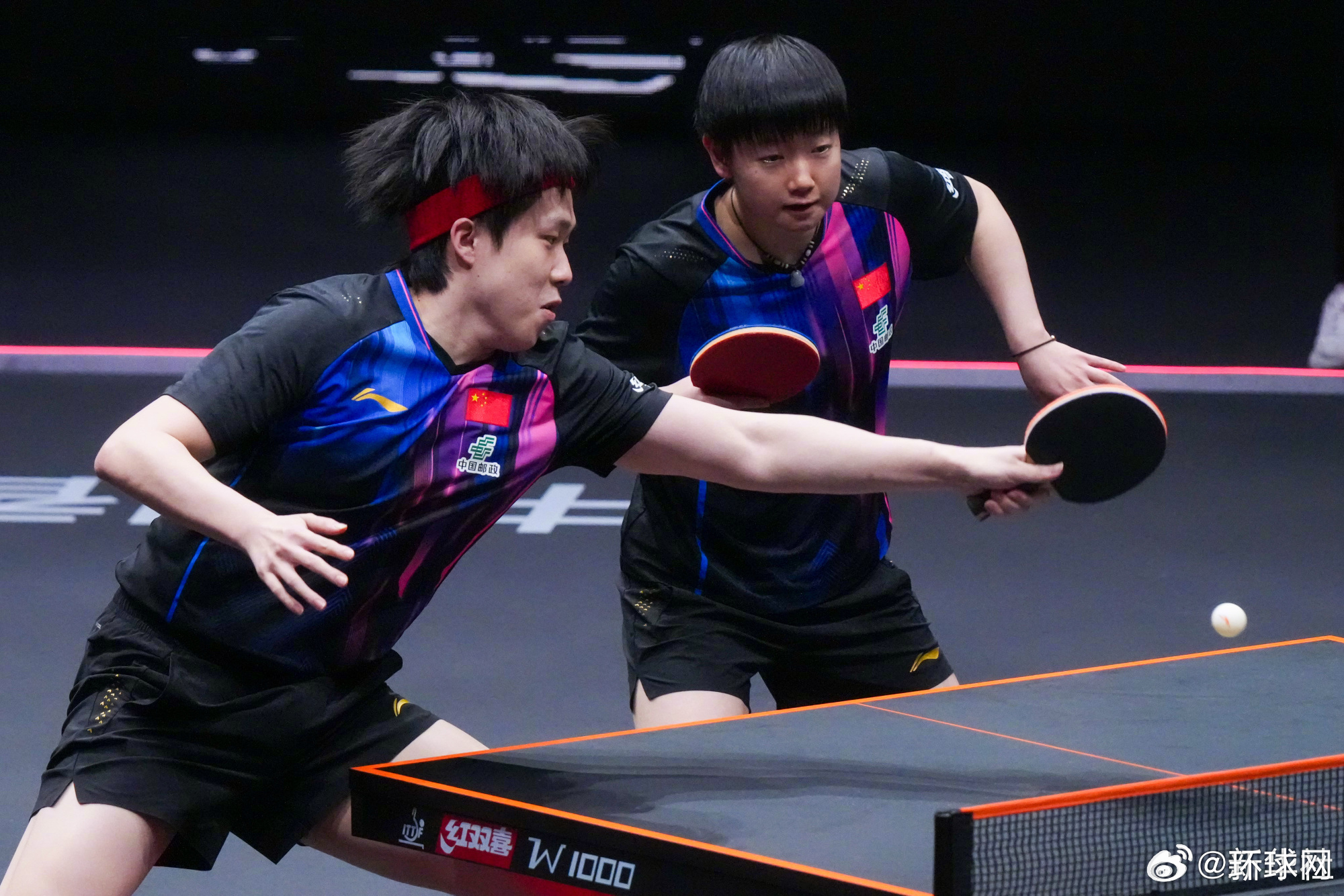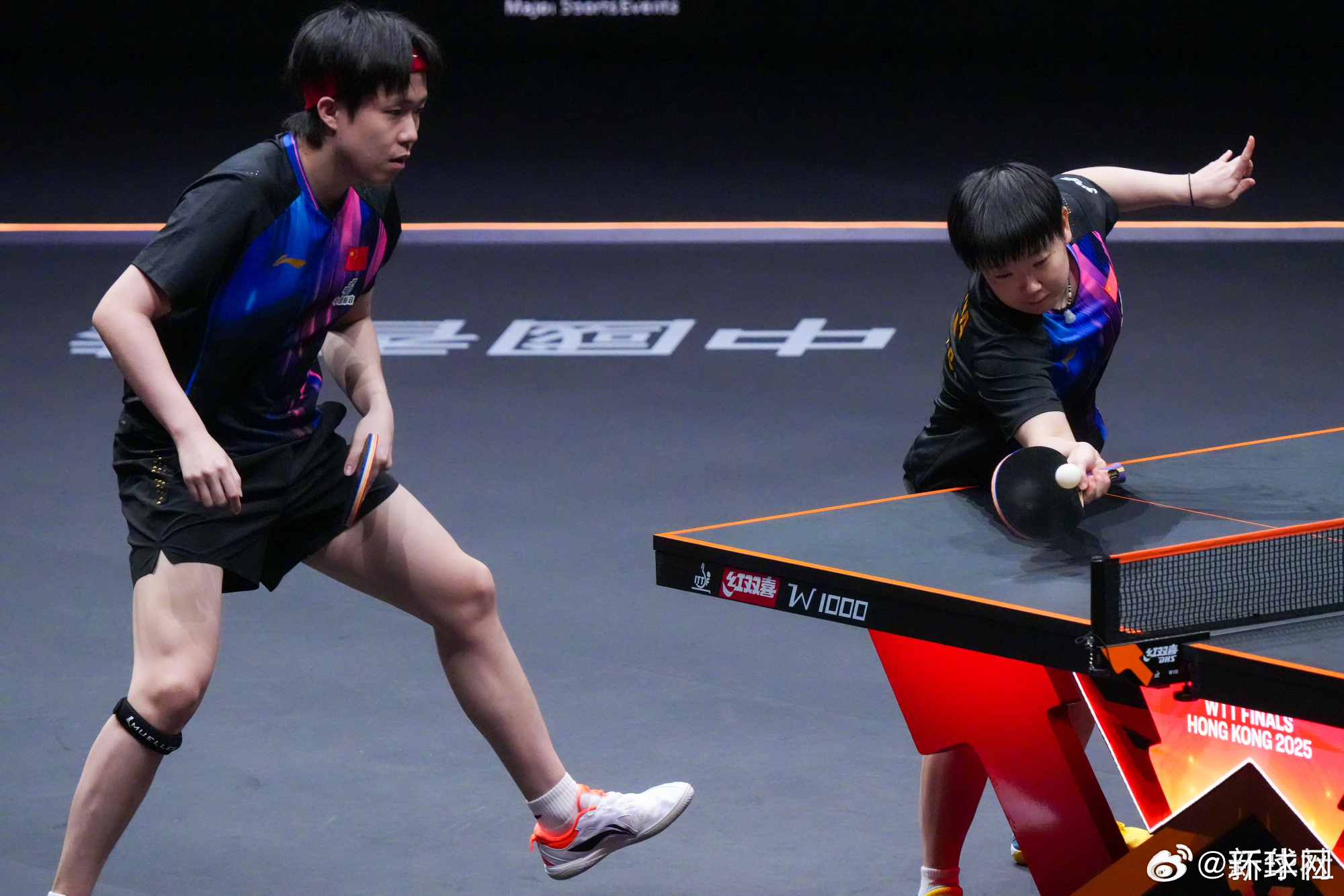 【#王楚钦孙颖莎3比0胜林诗栋蒯曼#】在11日进行的世界乒乓球职业大联盟(WTT)香港总决赛混双比赛中, 战胜国乒队友蒯曼 (新华社)