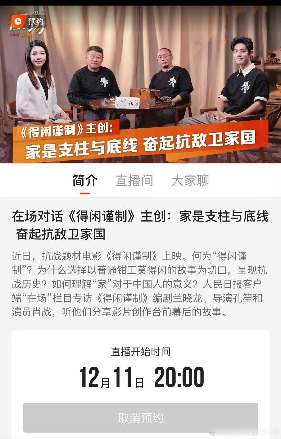 得闲谨制主创兰晓龙,孔笙,肖战,今晚人民日报8:00直播居然还有人民日报阿婆婆~提前下载好