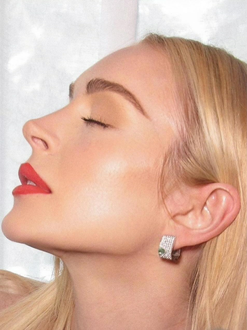 LindsayLohan林赛罗韩分享新妆造细节和造型,用红唇和亮片营造节日氛围