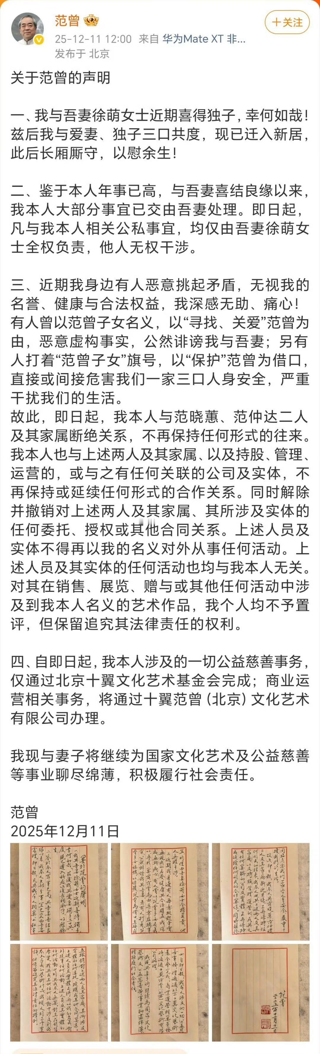 87 岁的范增又当爸爸了,在当太爷的年纪又当了爸,范增和张纪中都很厉害!范曾 徐萌