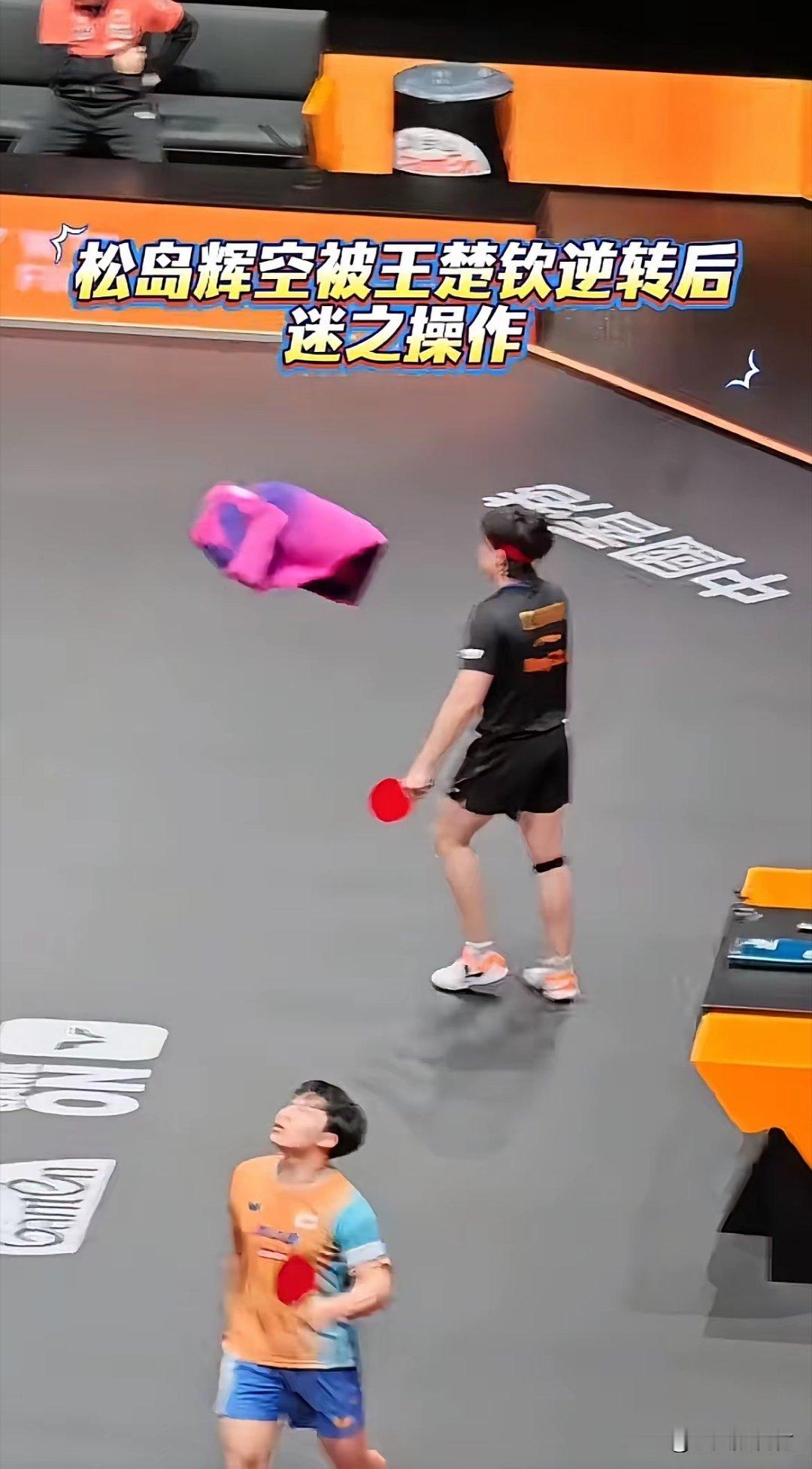 松岛辉空输了当场把毛巾扔了。后来采访前他又用毛巾捂着脸哭。网友问:想知道毛巾是地上捡起来的吗?网友答:是的。和裁判握手之前自己弯腰捡起来的他的队友没一个上前安慰他[捂脸]还冷眼相对。箱子在地上躺着也没有人帮助拿一下。松岛辉空真的差点就赢了。第五局大比分3:1,小比分9:6领先,被王楚钦反超12:10拿下第五局,王楚钦拿下第五局,求胜欲就更强了。又连赢两局。